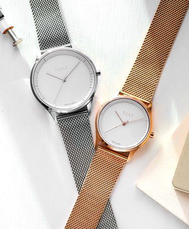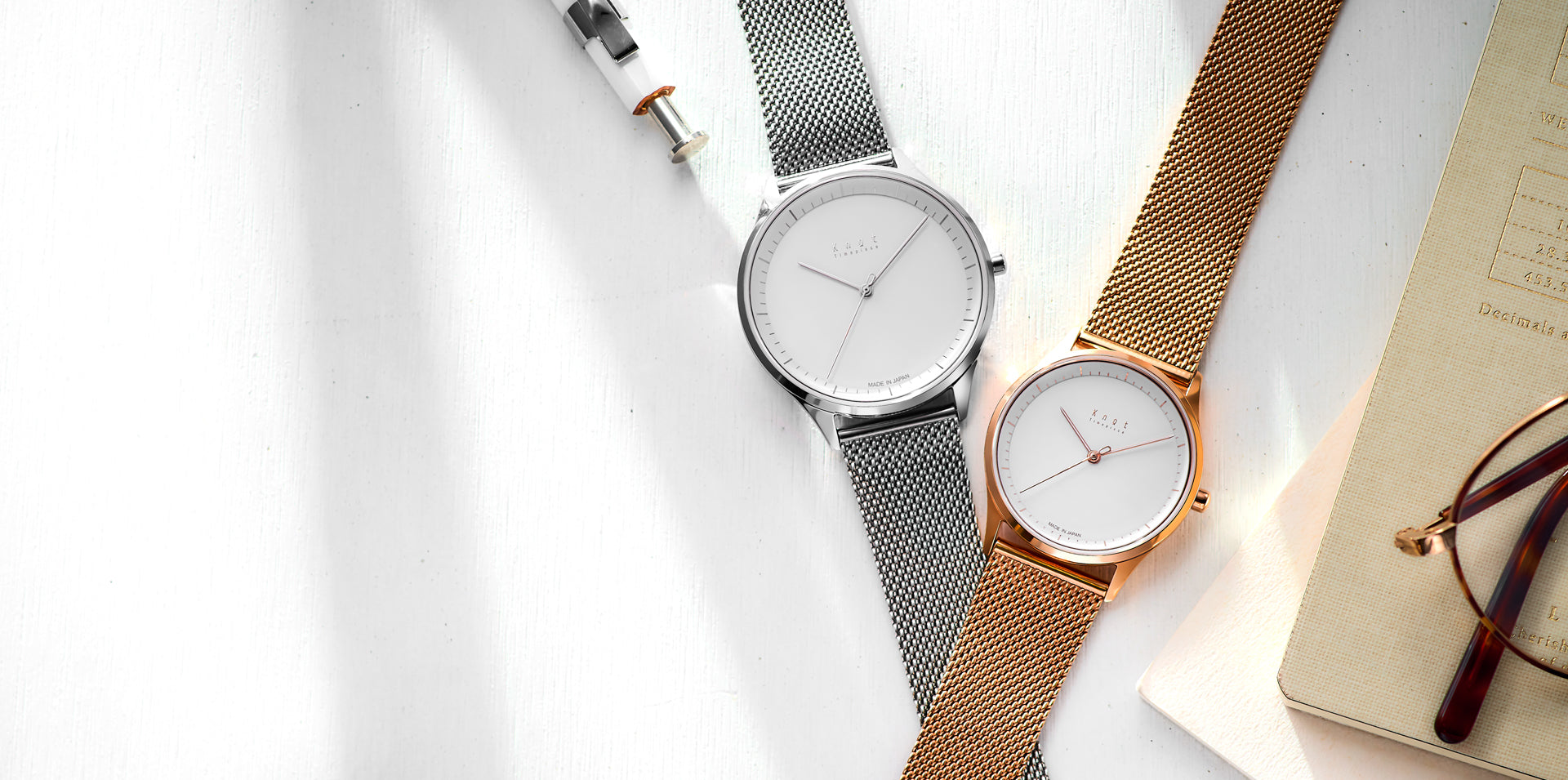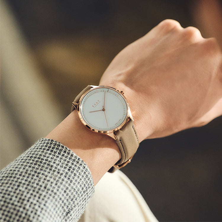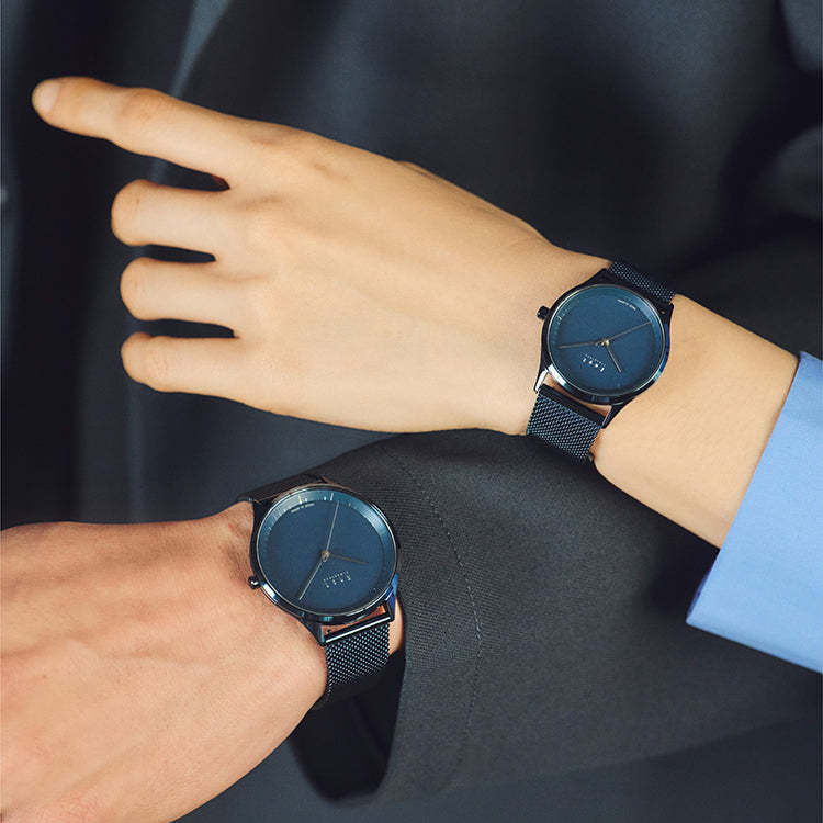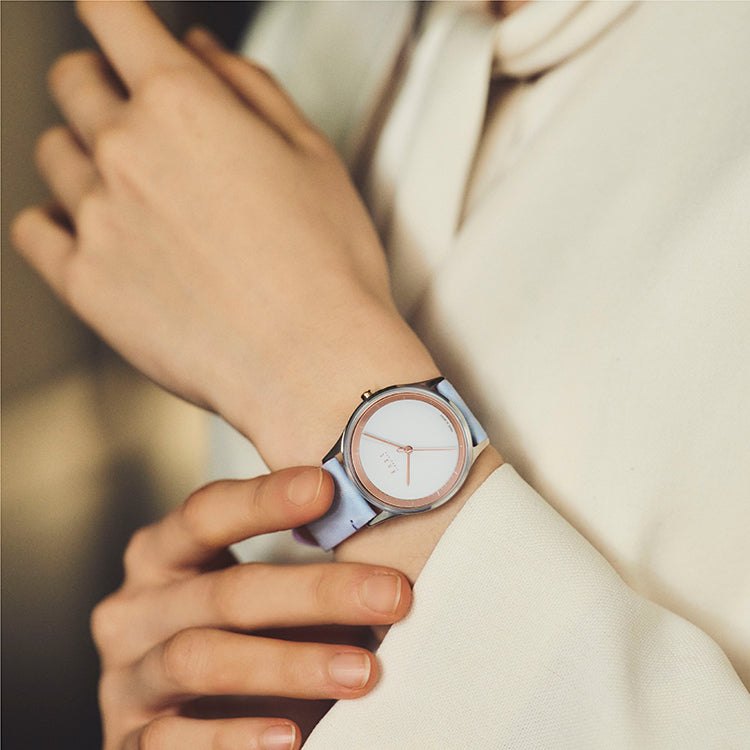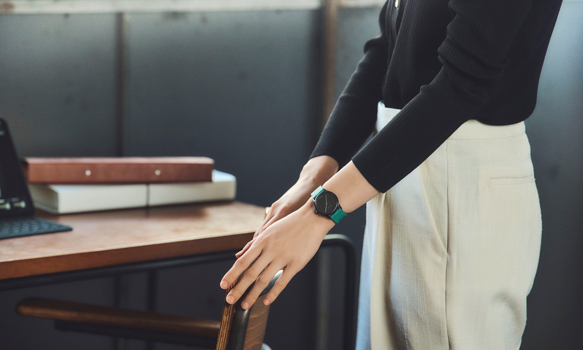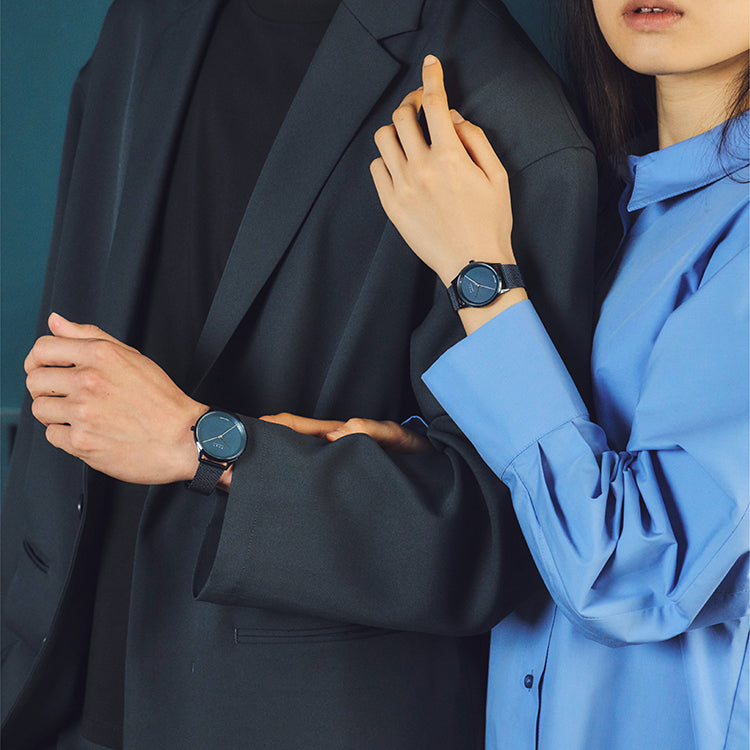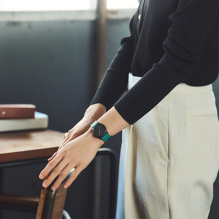 多くのご要望をいただいていた、同デザインでの2サイズをご用意いたしました。視認性の高い38mmのフェイスと華奢な腕元にもフィットする32mmのフェイスを展開しているので、色違いでペアウォッチとしての愛用もおすすめです。