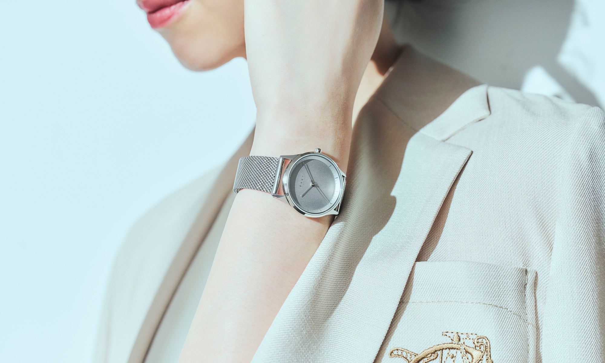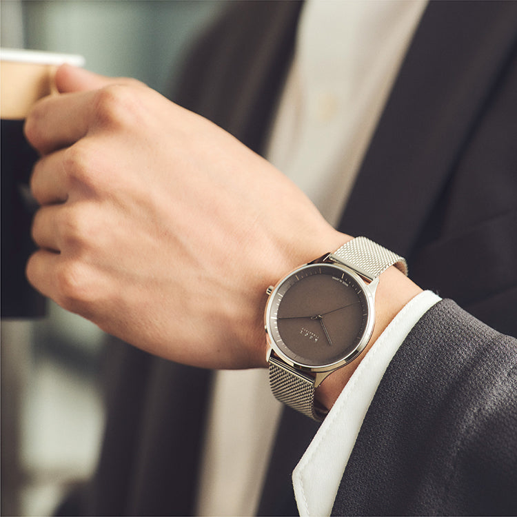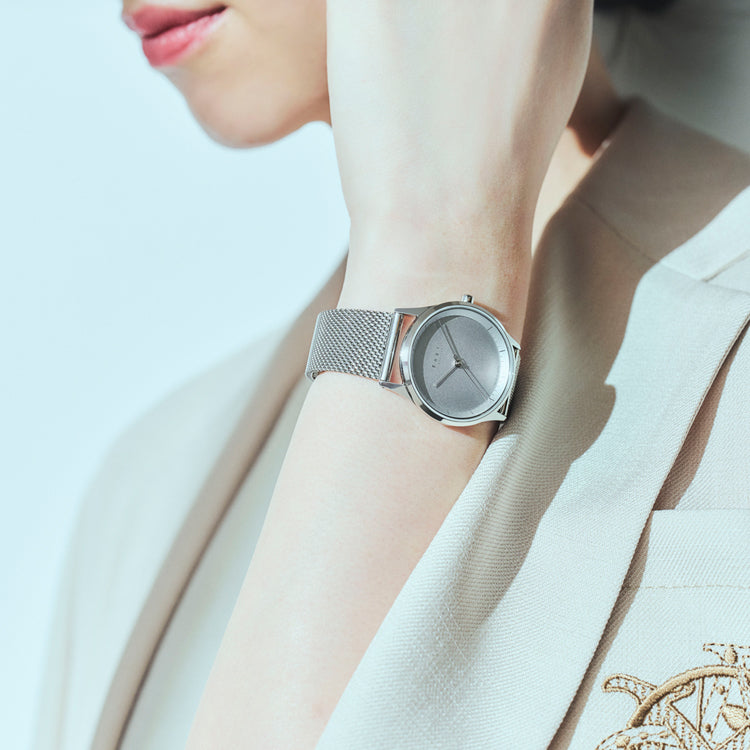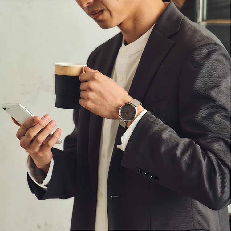 Knot史上最も薄く軽い、腕に吸いつくようなスリムなケースが特徴です。Knotでは医療用のメスなどにも使用される耐食性に優れた高純度のステンレススティールSUS316Lを標準採用。金属アレルギーの原因となる金属イオンをほとんど発生させないため、金属アレルギーの方でも身につけやすい素材です。