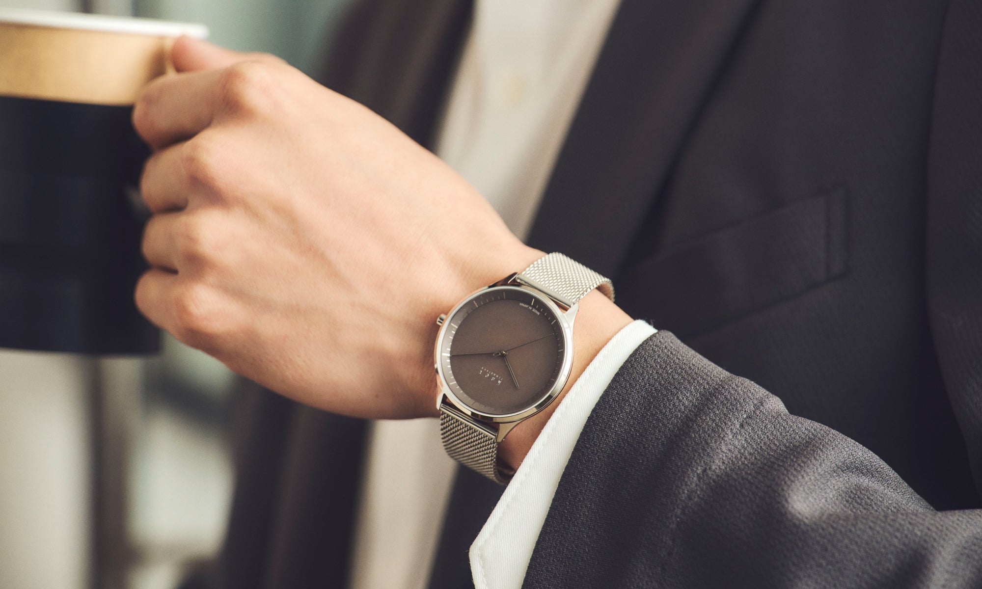 また、 光の屈折を利用し、文字板下のソーラーセルに光を集約するリング構造を採用。光を集約する計算された角度のインナーリングにインデックスを集約し、文字板にはロゴと刻印のみが入ったミニマルなデザインです。