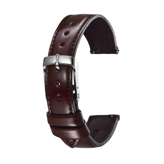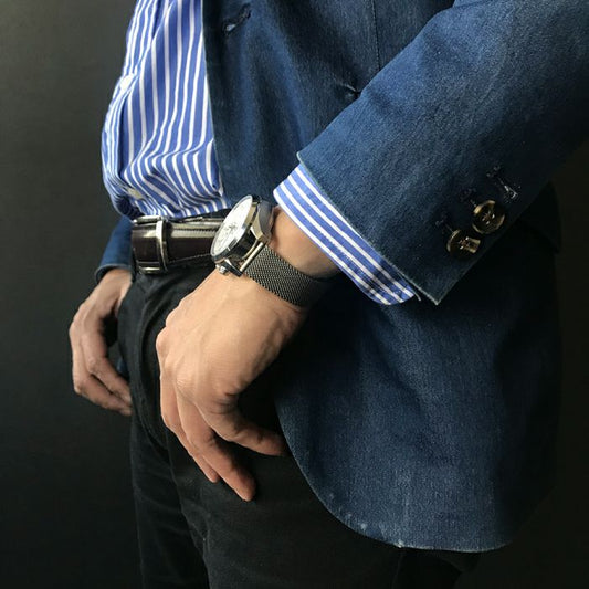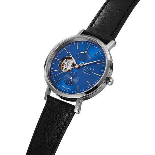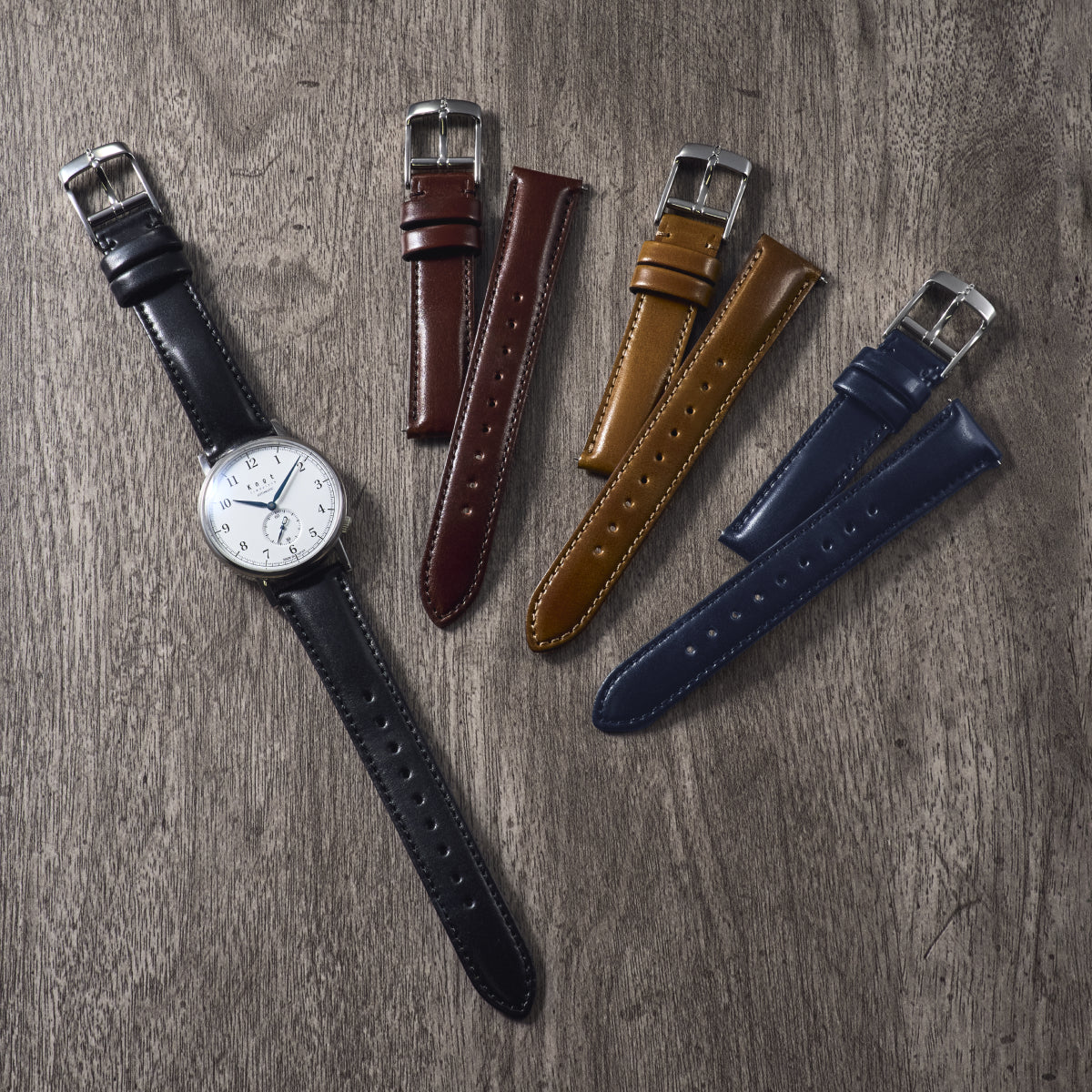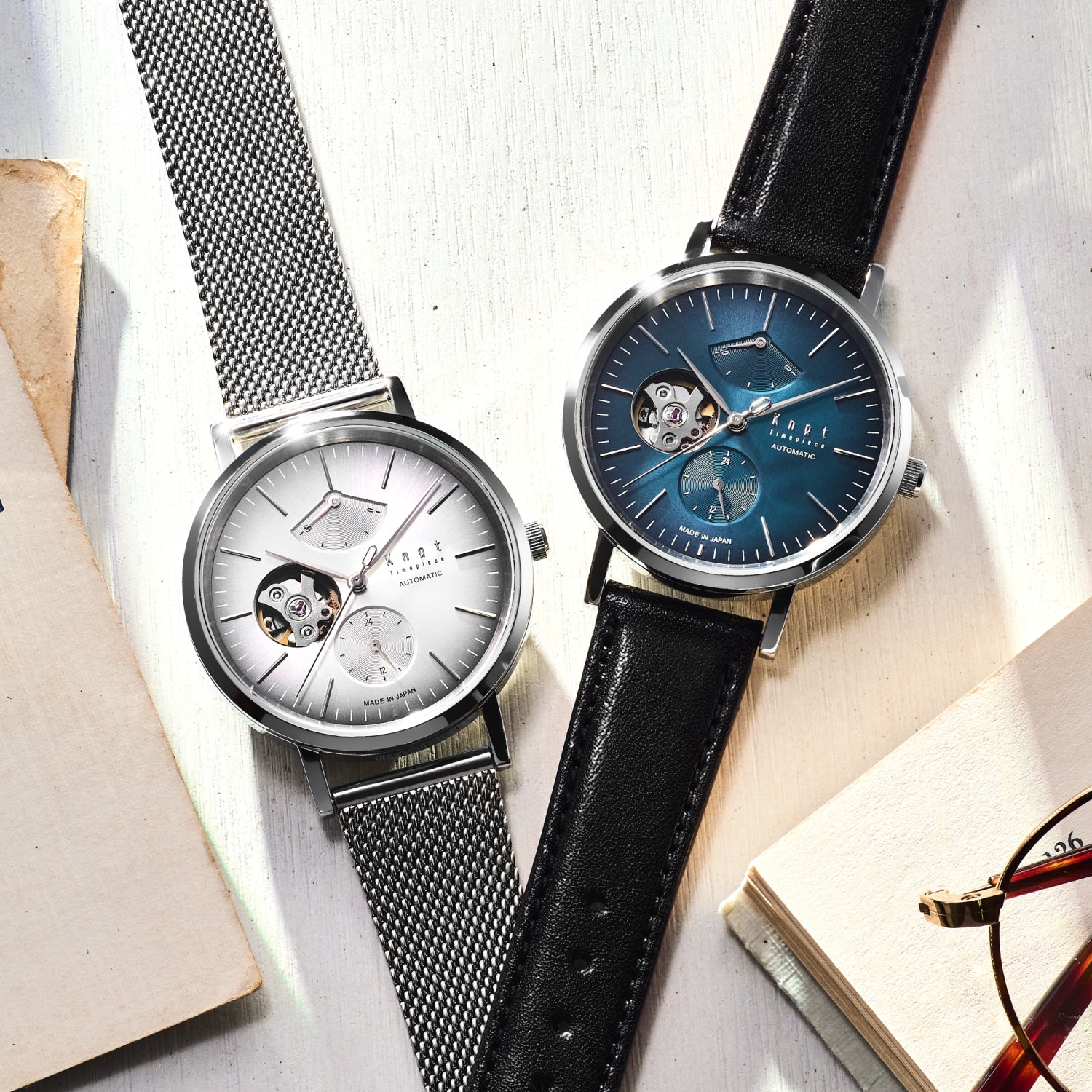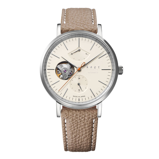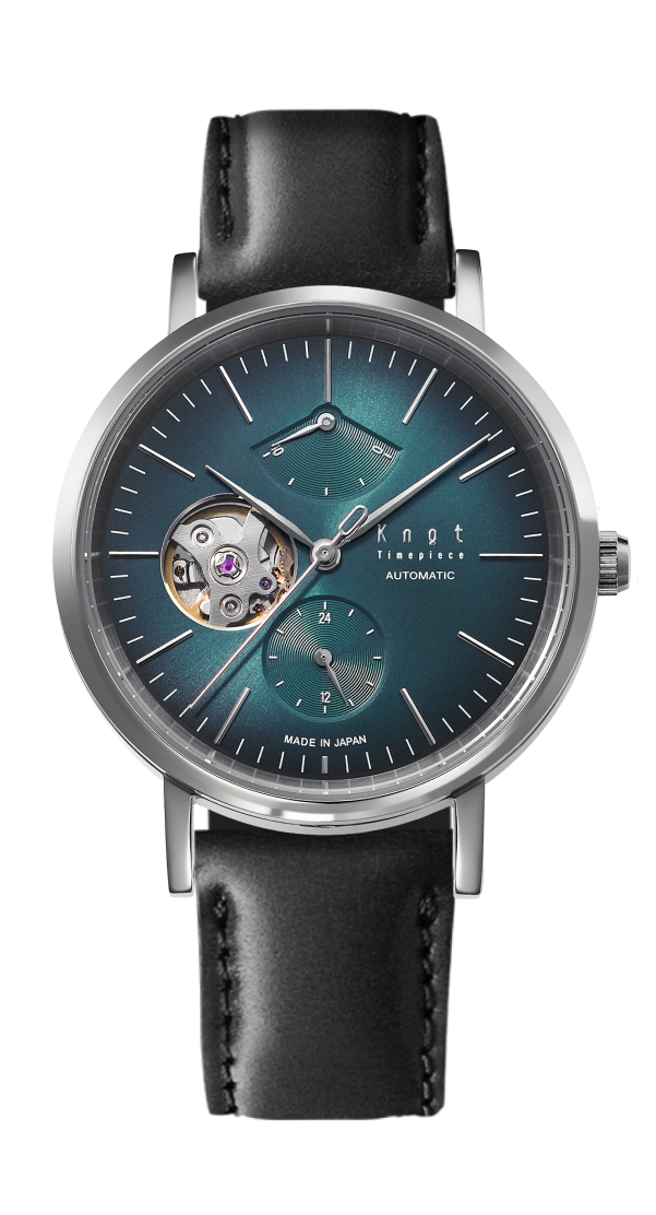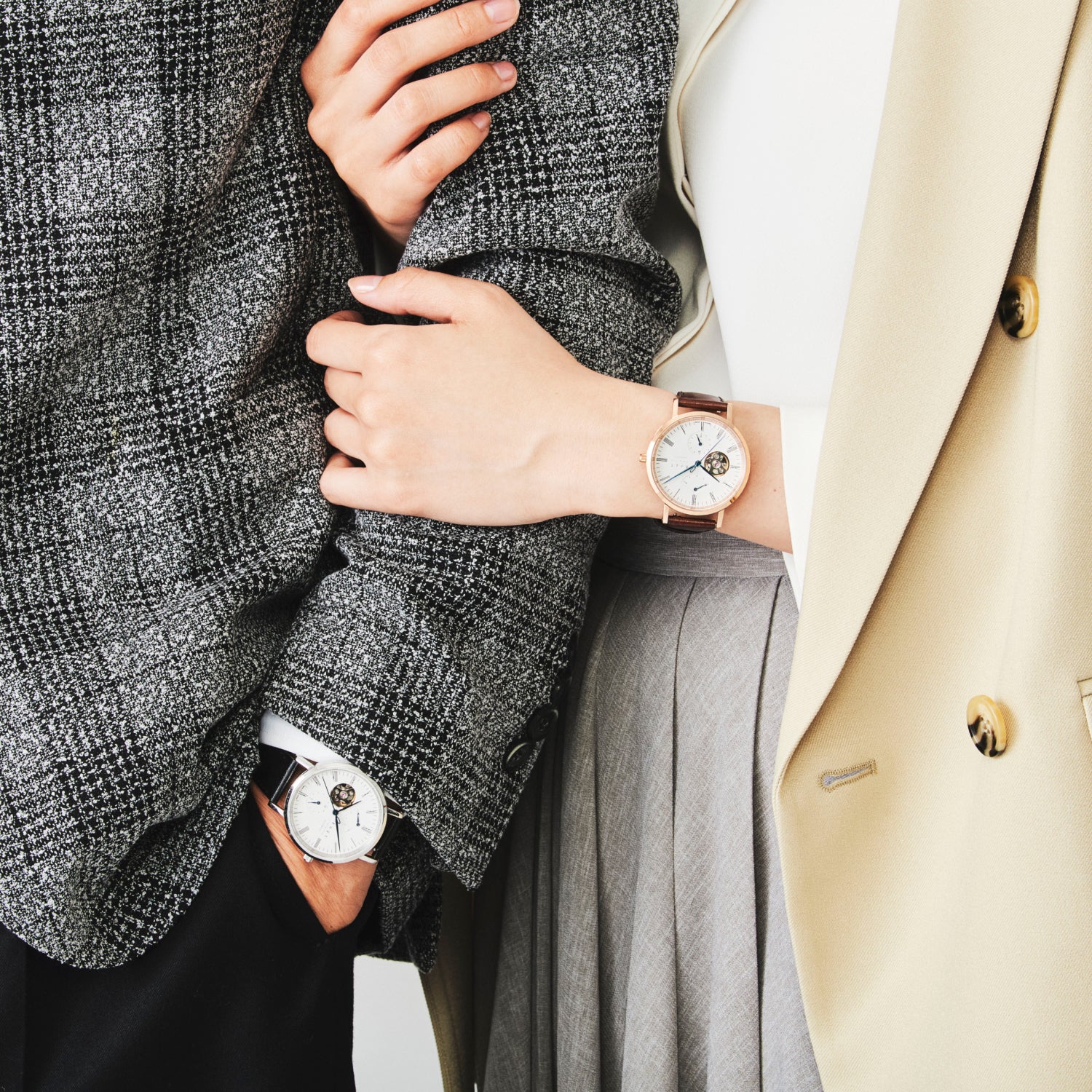 自動巻き時計の心臓部が見えるオープンハート。アナログならではの特別な魅力のある腕時計です。革の宝石と称される希少なコードバンを合わせ、特別な日の装いに。