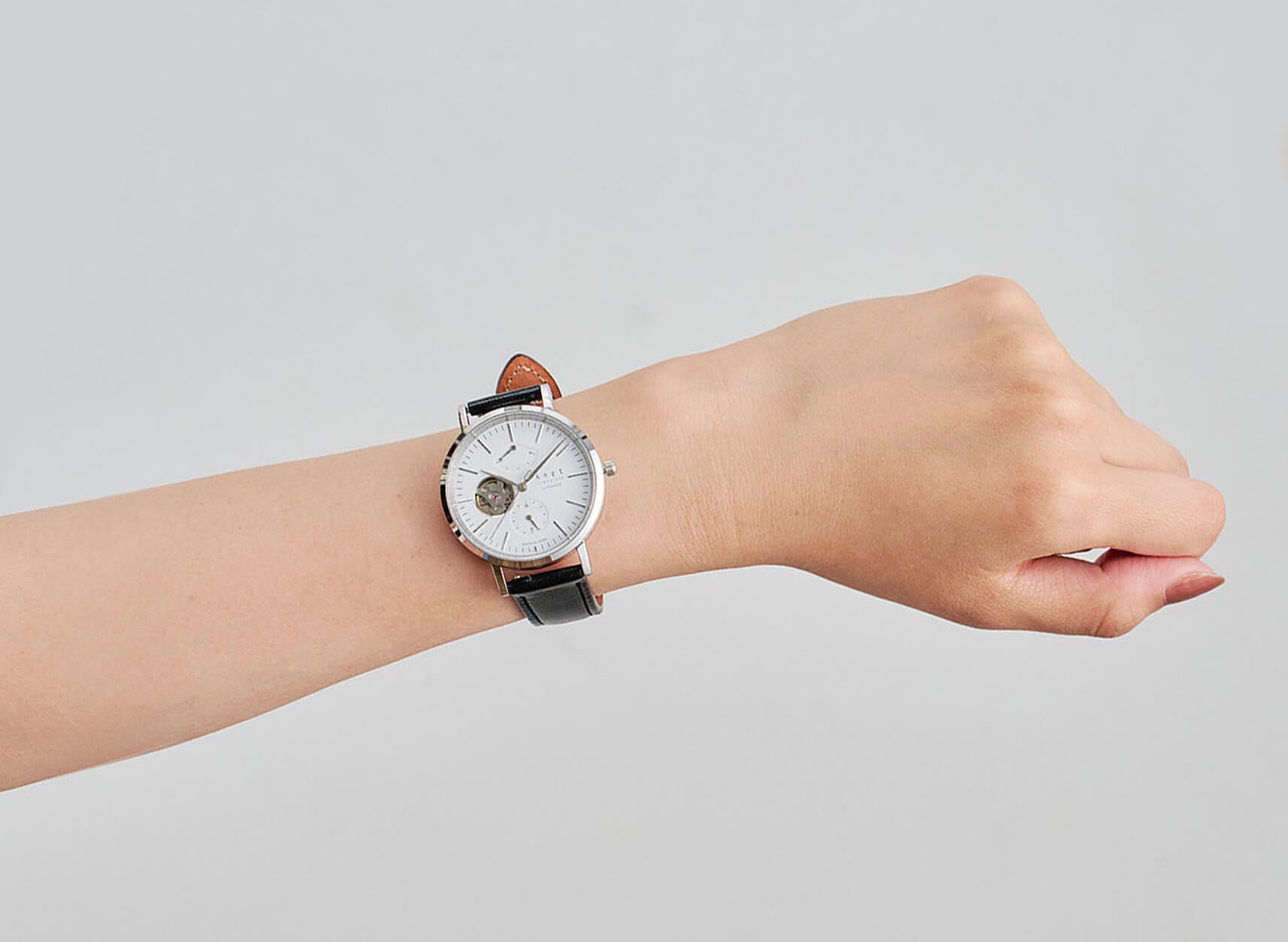 シンプルでスリム、女性でも使いやすいCAP-38、質感の違いで見せるレイヤー構造のダイヤルデザインとボールドなラグケースで腕元で存在感を放つCAP-40。2つのメカニカルオープンハートをご用意しております。