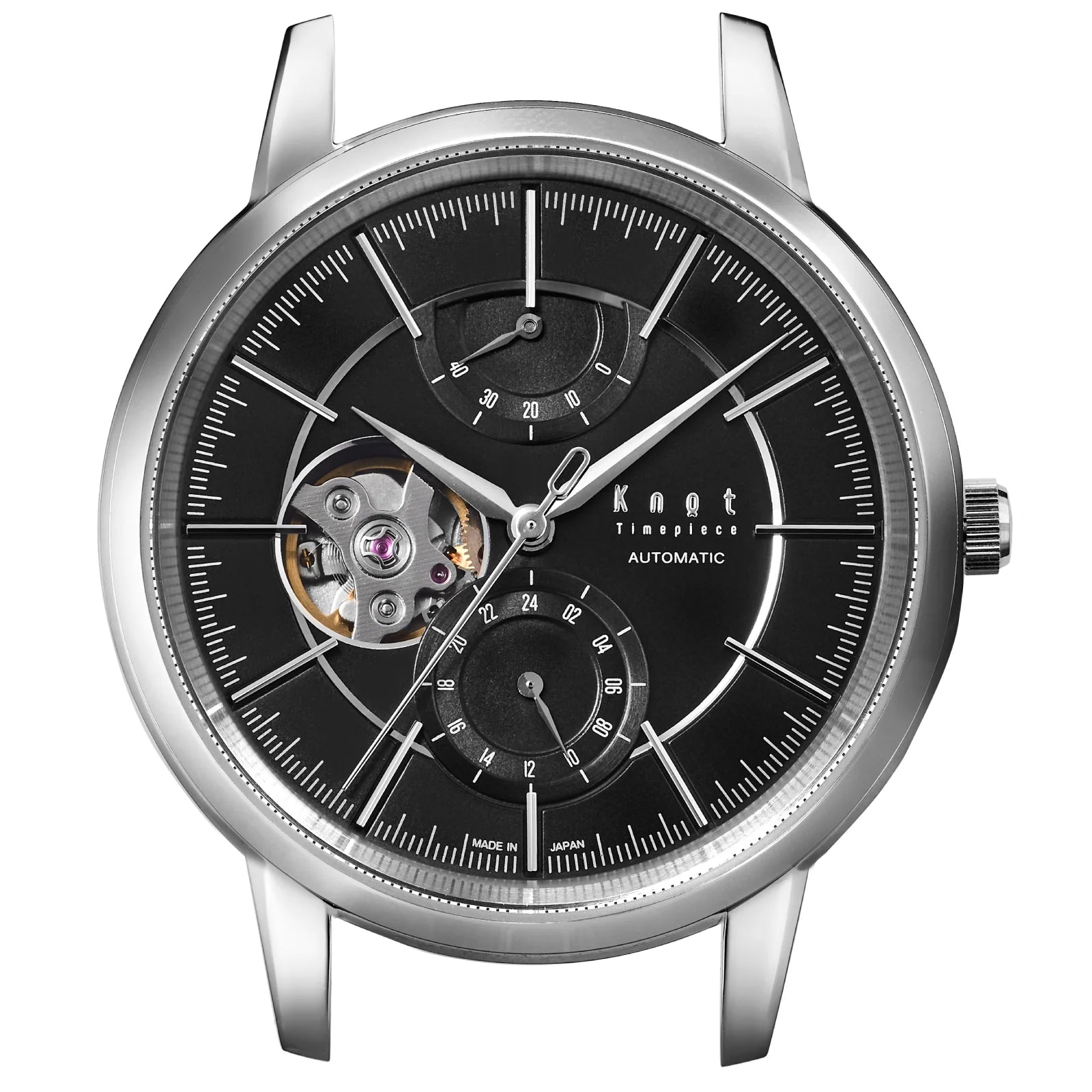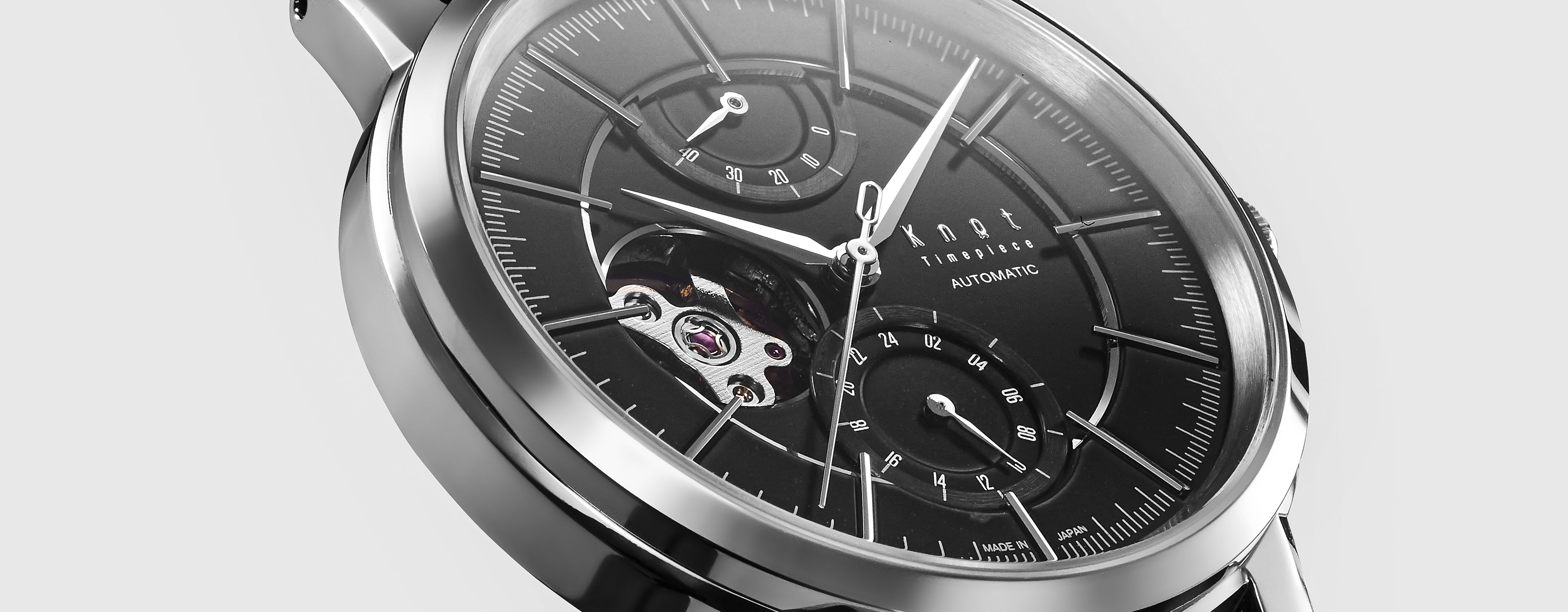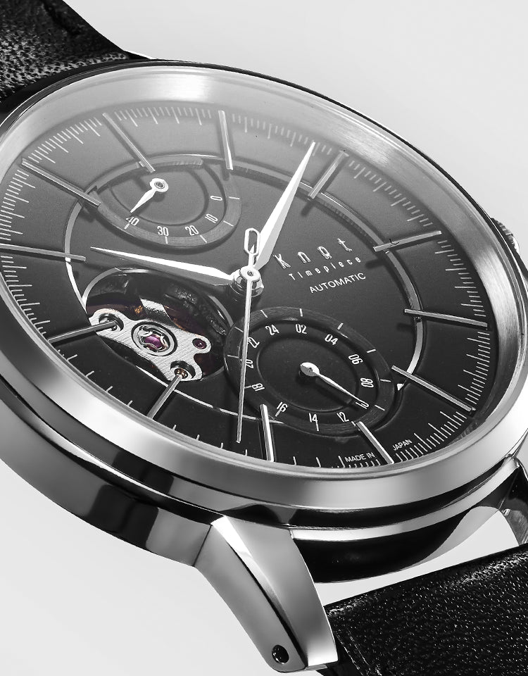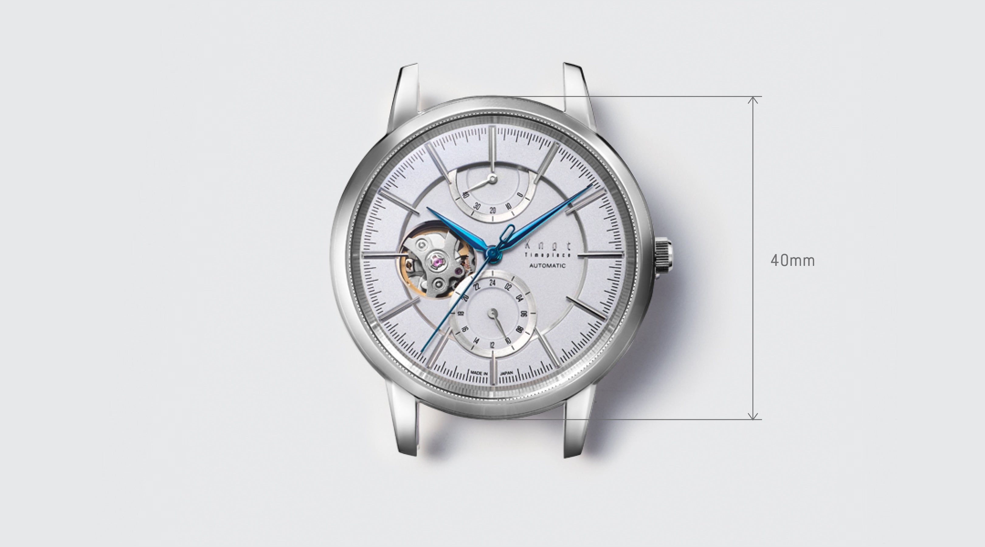 40mmのケースボリュームに相応しい、ボールドなラグデザイン。Knotでは医療用のメスなどにも使用される耐食性に優れた高純度のステンレススティールSUS316Lを標準採用。金属アレルギーの原因となる金属イオンをほとんど発生させないため、金属アレルギーの方でも身につけやすい素材です。