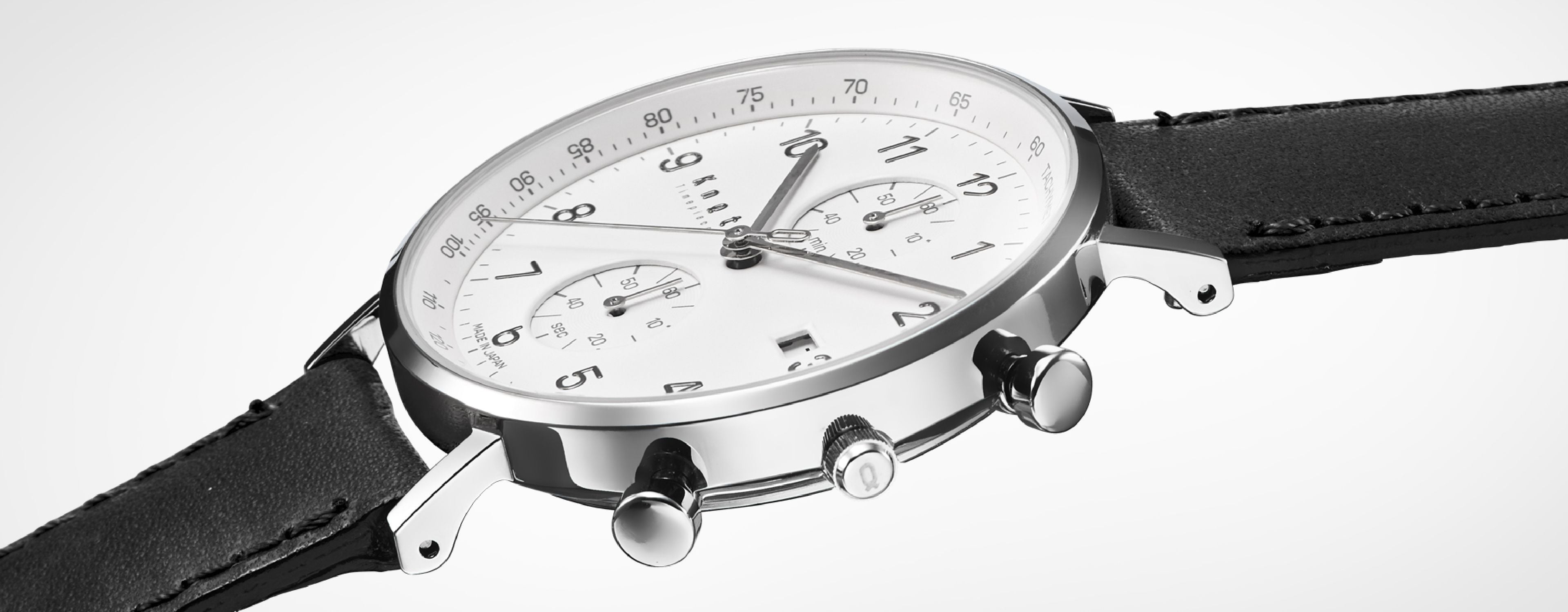 シンプルなバーインデックスのCC-39、読みやすいアラビック数字にタキメーターを備えたCC-39 ARABIC。Knotの創業時からの定番クロノグラフには2つのタイプをご用意しております。