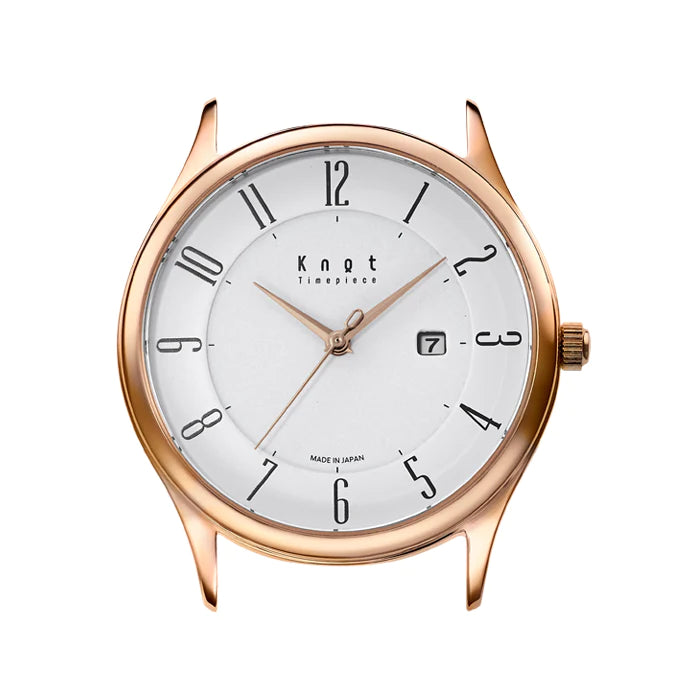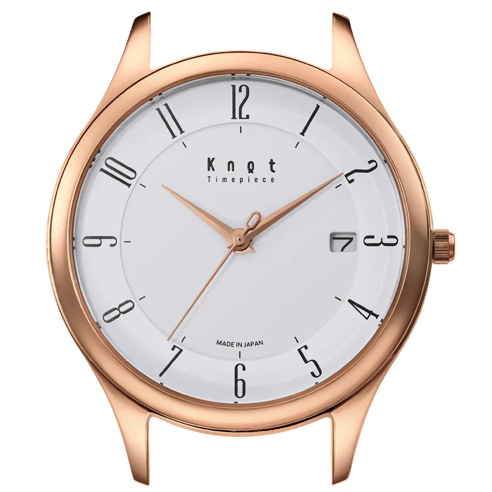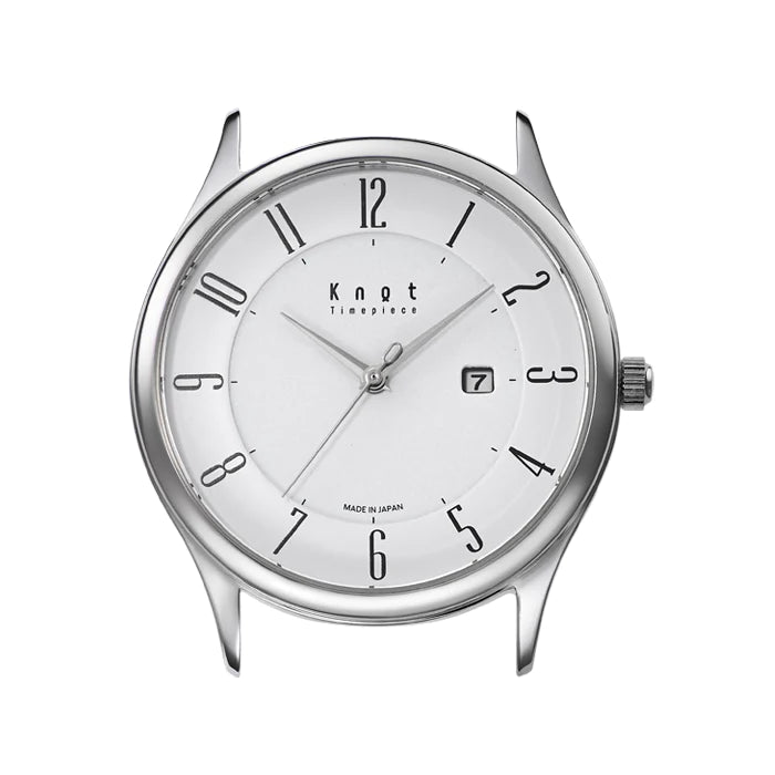 ケースとラグをスムーズに曲線でつなげたデザイン。柔らかな曲線がエレガントな印象です。Knotでは医療用のメスなどにも使用される耐食性に優れた高純度のステンレススティールSUS316Lを標準採用。金属アレルギーの原因となる金属イオンをほとんど発生させないため、金属アレルギーの方でも身につけやすい素材です。
