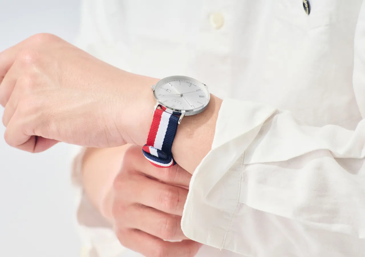 1970年、繊維製品に始まったSHINDOの「織る」「編む」技術は、華麗なデコレーションリボンから、ジェット機エンジンのカーボン素材にまで及ぶ。その実績はヨーロッパのメゾンブランドから、日本代表ユニフォームに素材が採用されているほど品質基準と高い技術が証明されている。徹底された品質管理の中、着用感に優れ、また高い撥水性を有した機能性と、美しい織り目から生まれる光沢感により発色の鮮やかなMADE IN JAPANの「極」ナイロンストラップが実現しました。