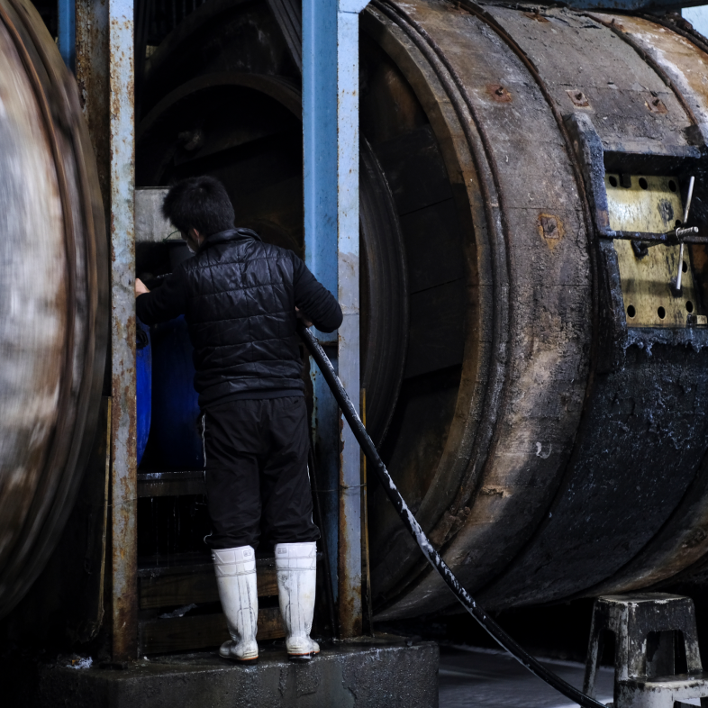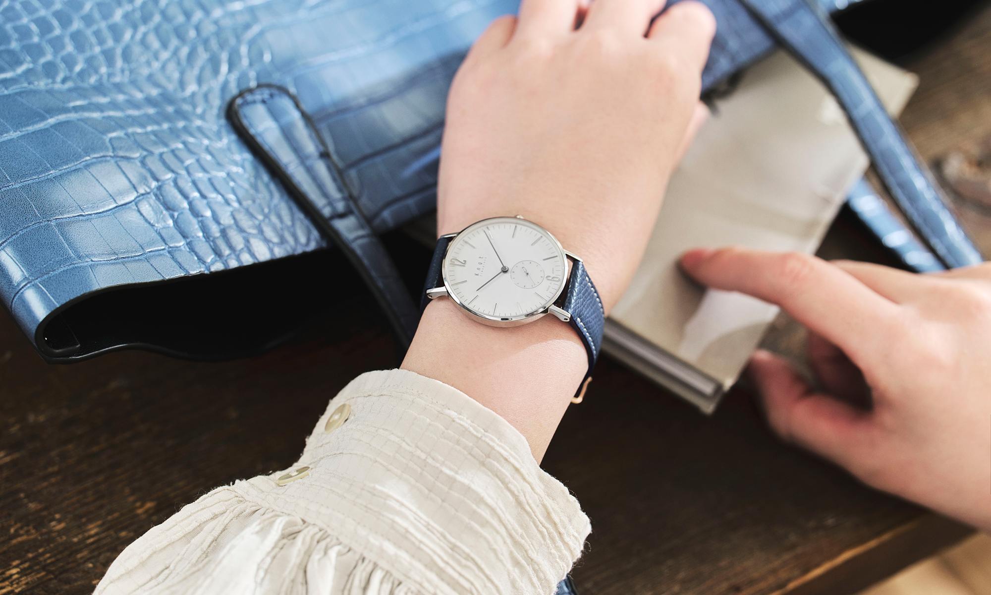原皮には、肉牛よりも優しくしなやかと言われる、乳牛の皮を採用。薄手で弾力性に富む質感が特徴です。さらに、製革工程の中で何度も丁寧にアイロンがけされたレザーは、滑らかで柔らかく、着けるほどに腕になじんでいくことでしょう。