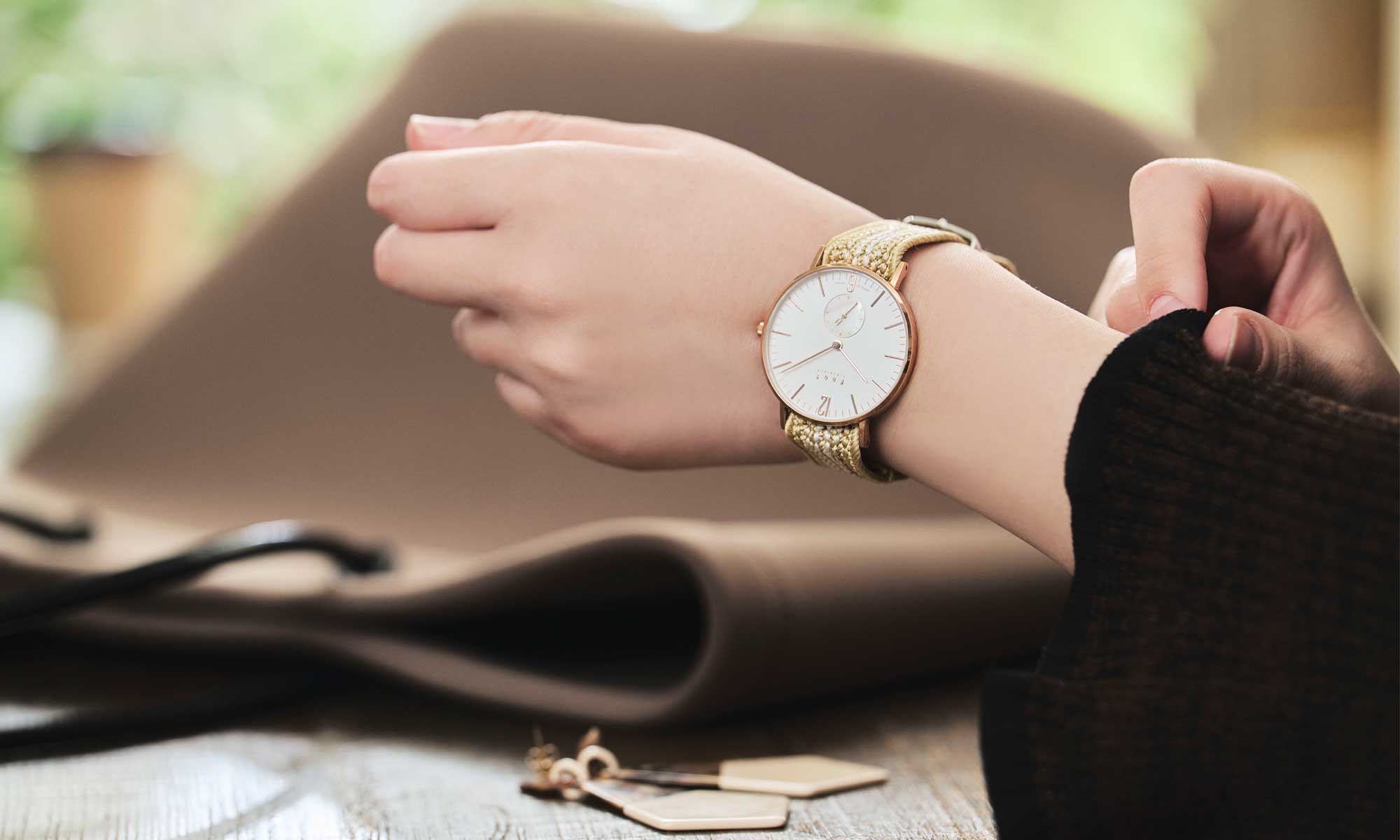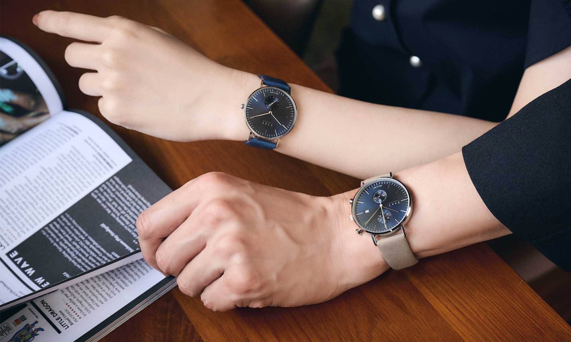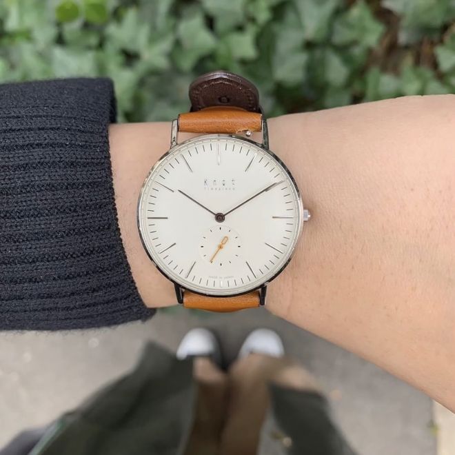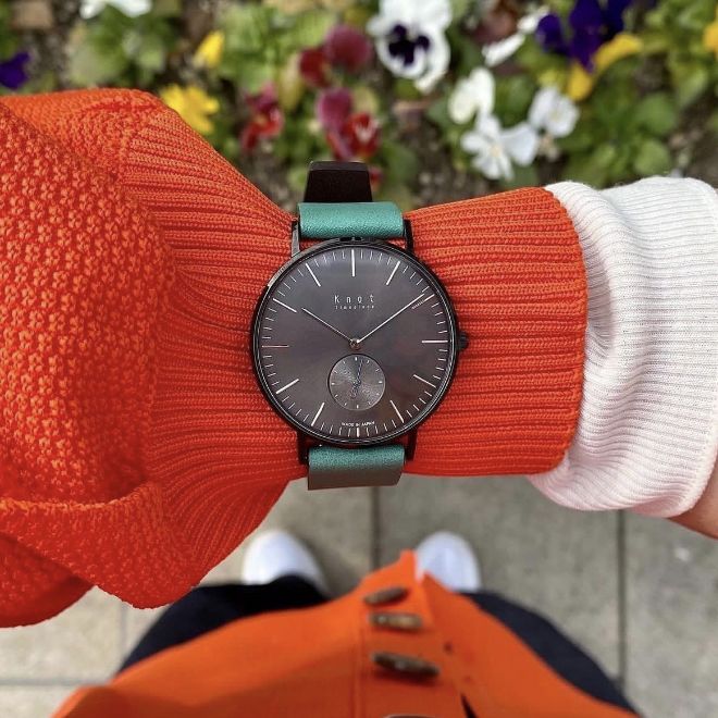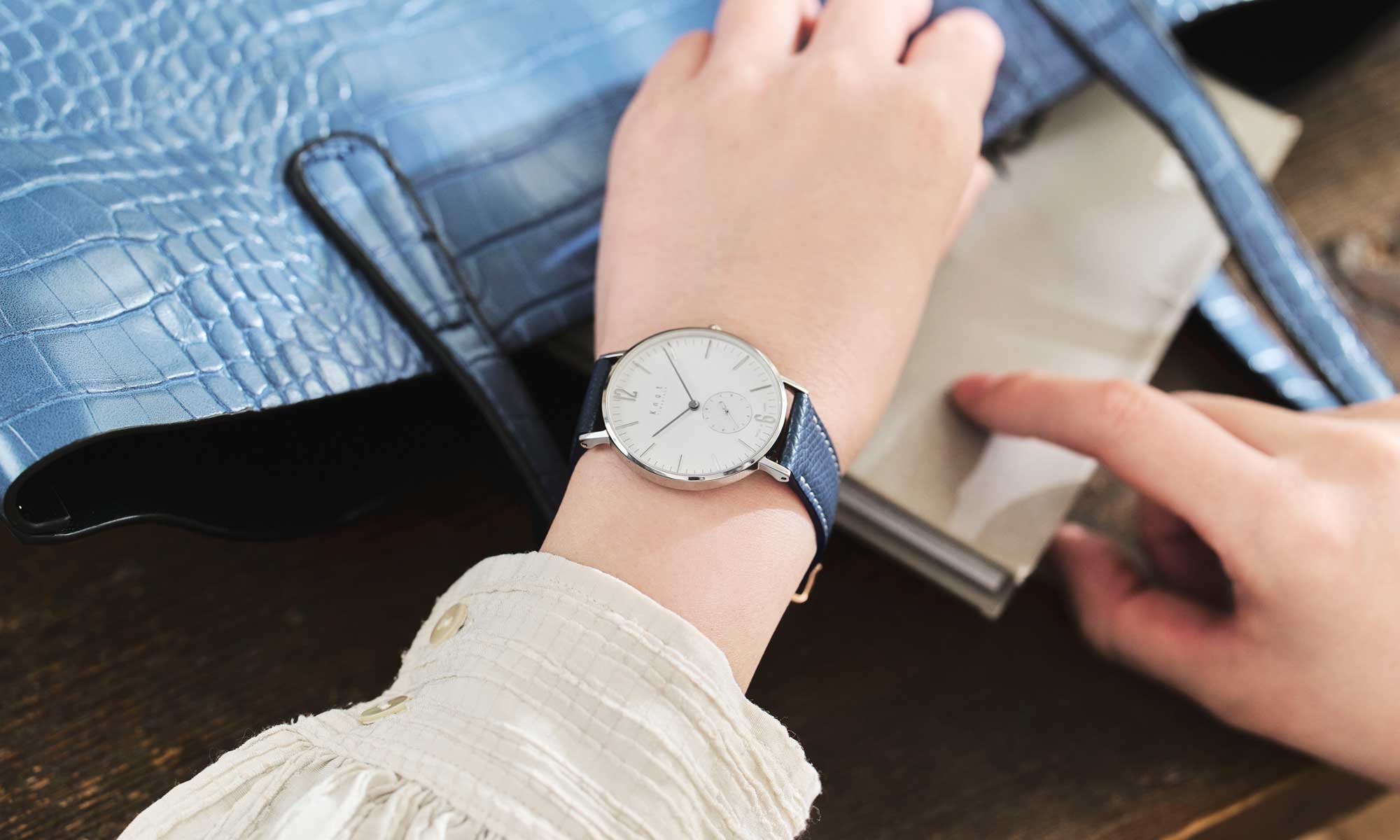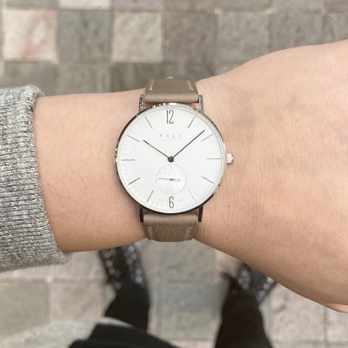 腕時計選びはサイズ感がとても重要。CS-36は華奢な腕元では少し大きめ、がっしりした腕元には少し小さめの36mm。日本人の平均的な腕周りでは男女ともに使いやすく、Knotでも一番ペアで使われる方が多いサイズです。