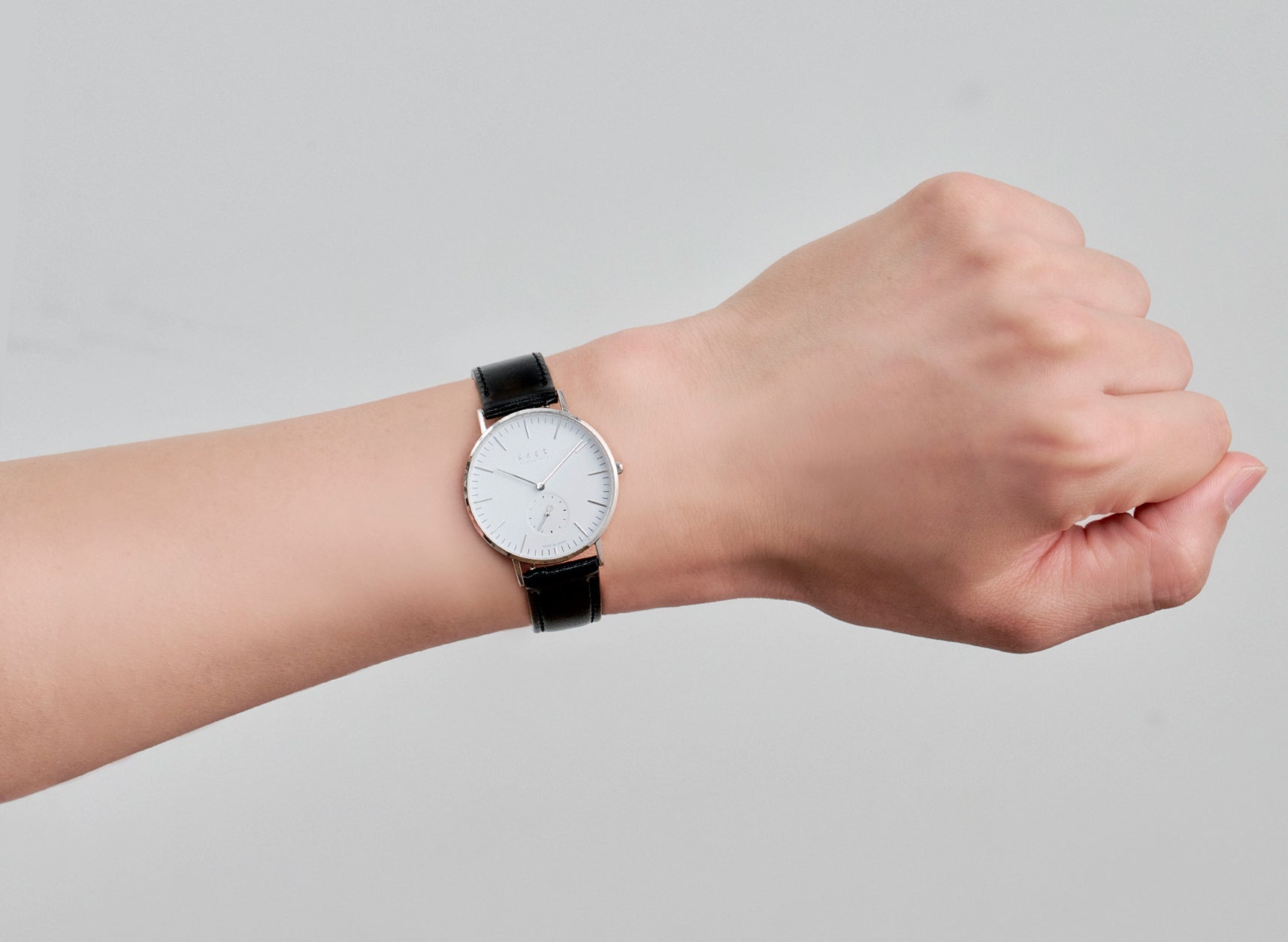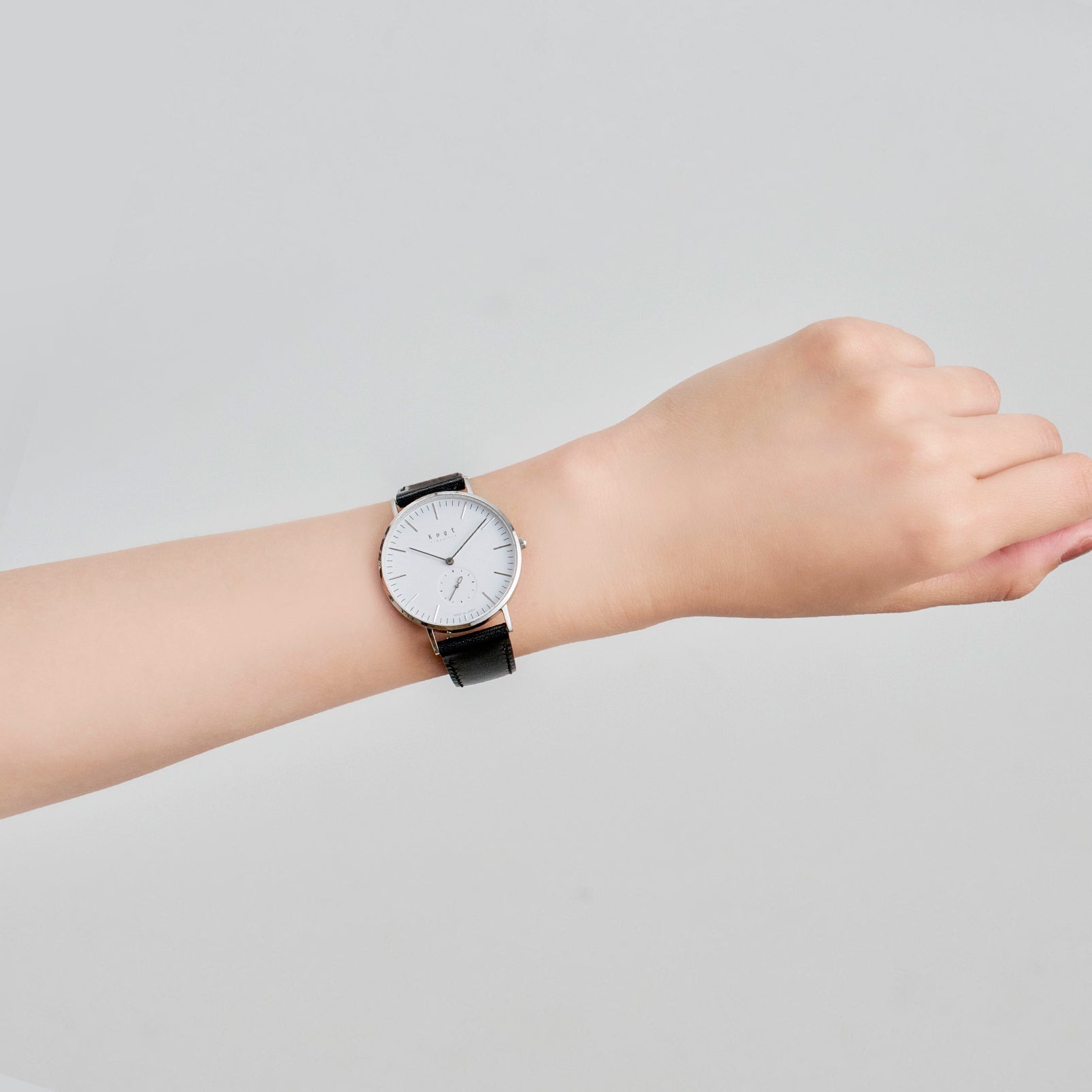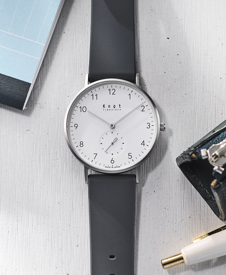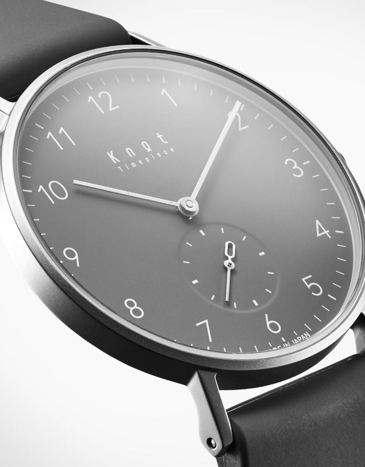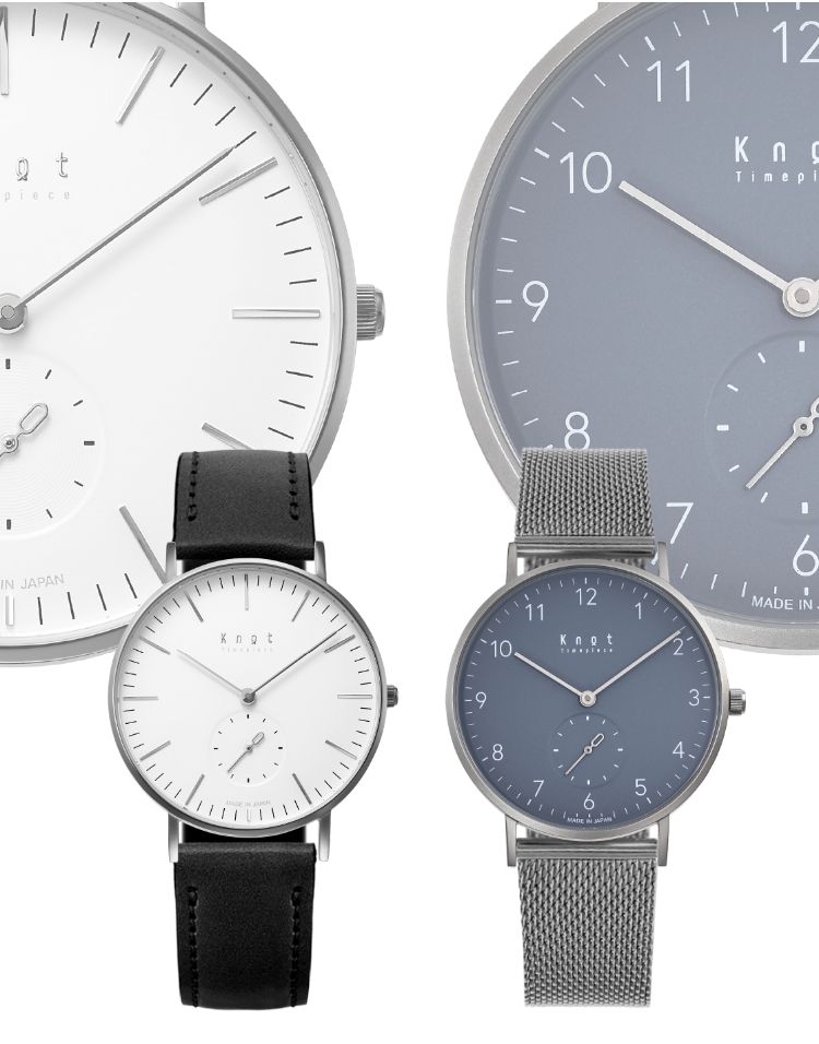 シンプルでフォーマルシーンにも使いやすいバーインデックスのCS-36、読みやすいアラビック数字でカジュアルに使いやすいCS-36 ARABIC。Knotの創業時からの定番スモールセコンドには2つのタイプをご用意しております。