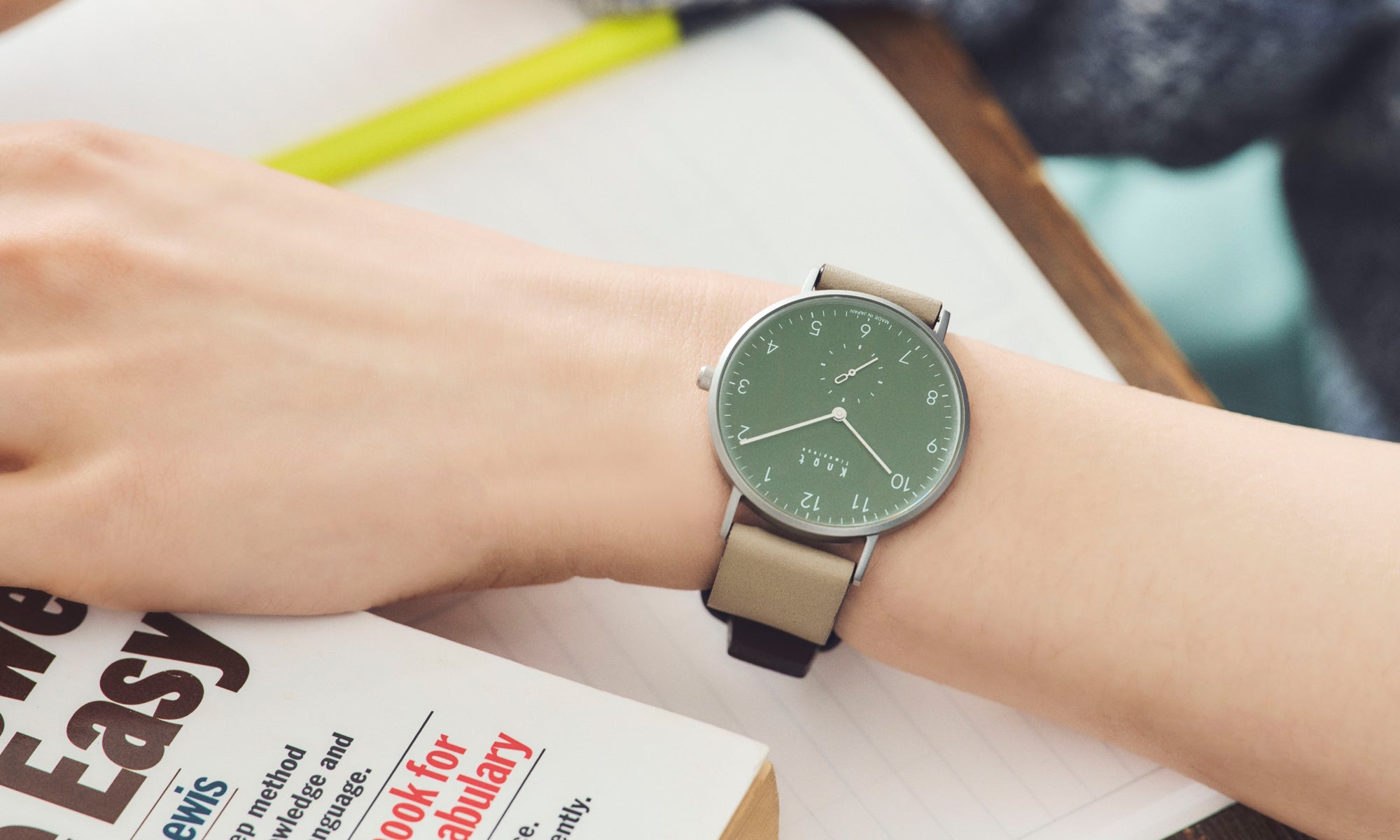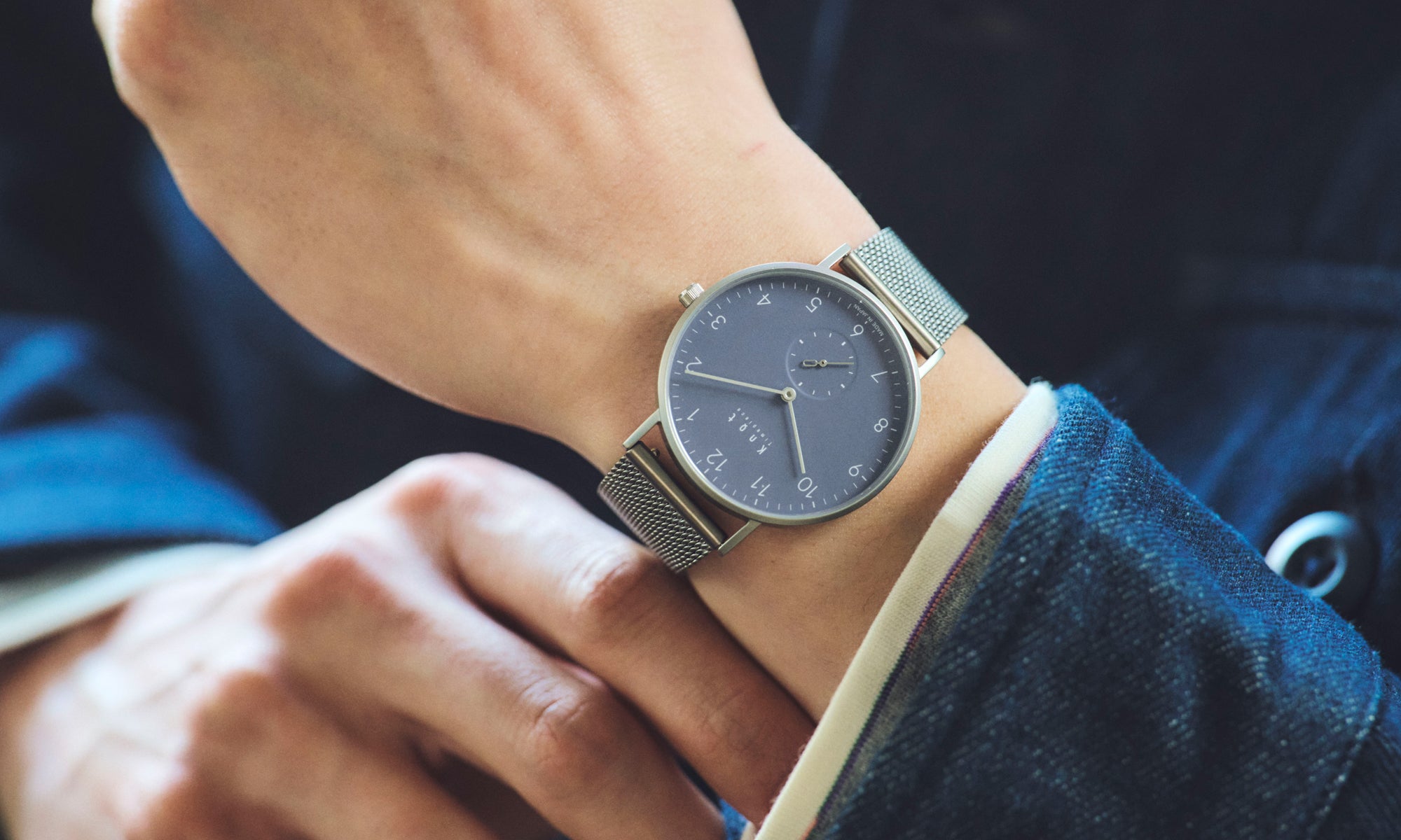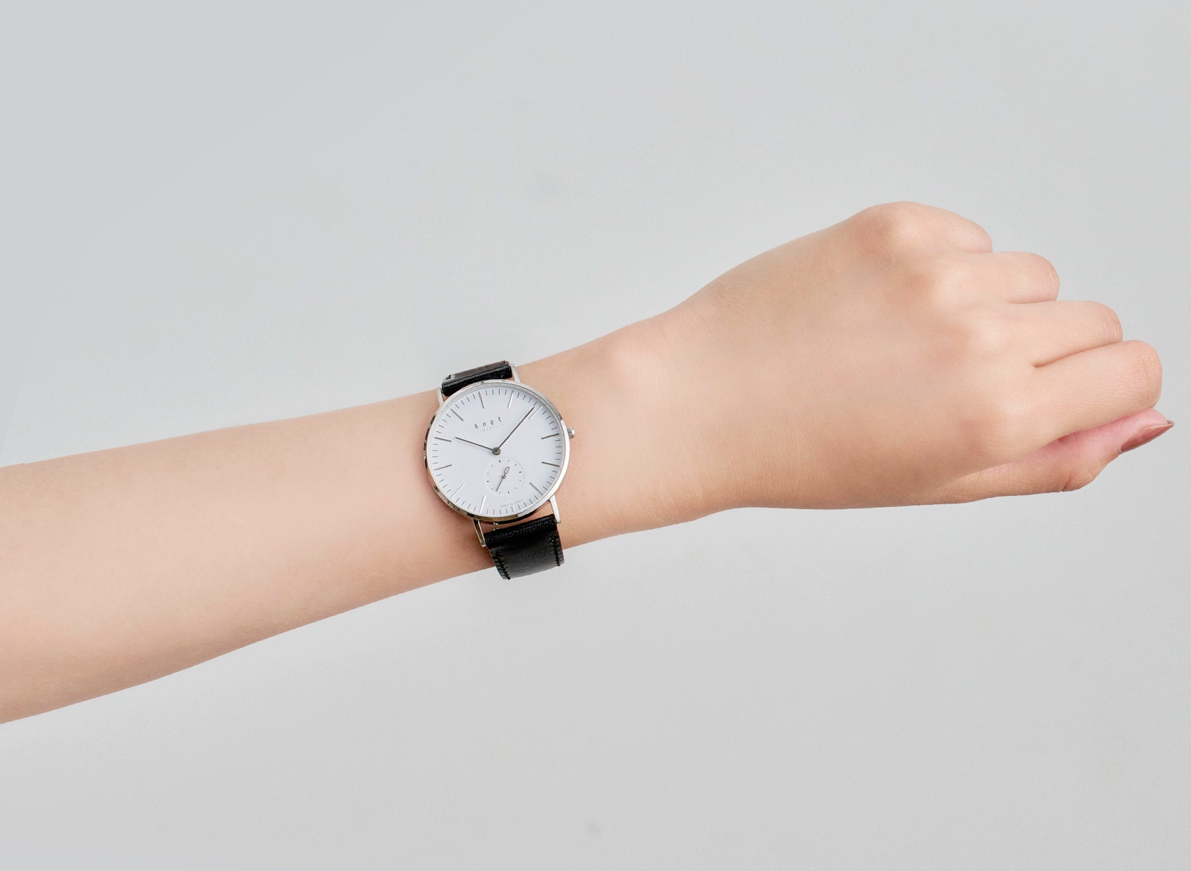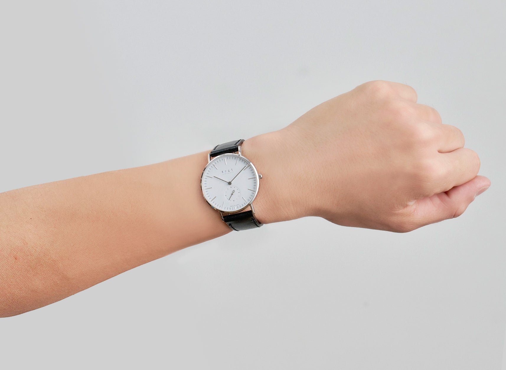 シンプルでフォーマルシーンにも使いやすいバーインデックスのCS-36、読みやすいアラビック数字でカジュアルに使いやすいCS-36 ARABIC。Knotの創業時からの定番スモールセコンドには2つのタイプをご用意しております。