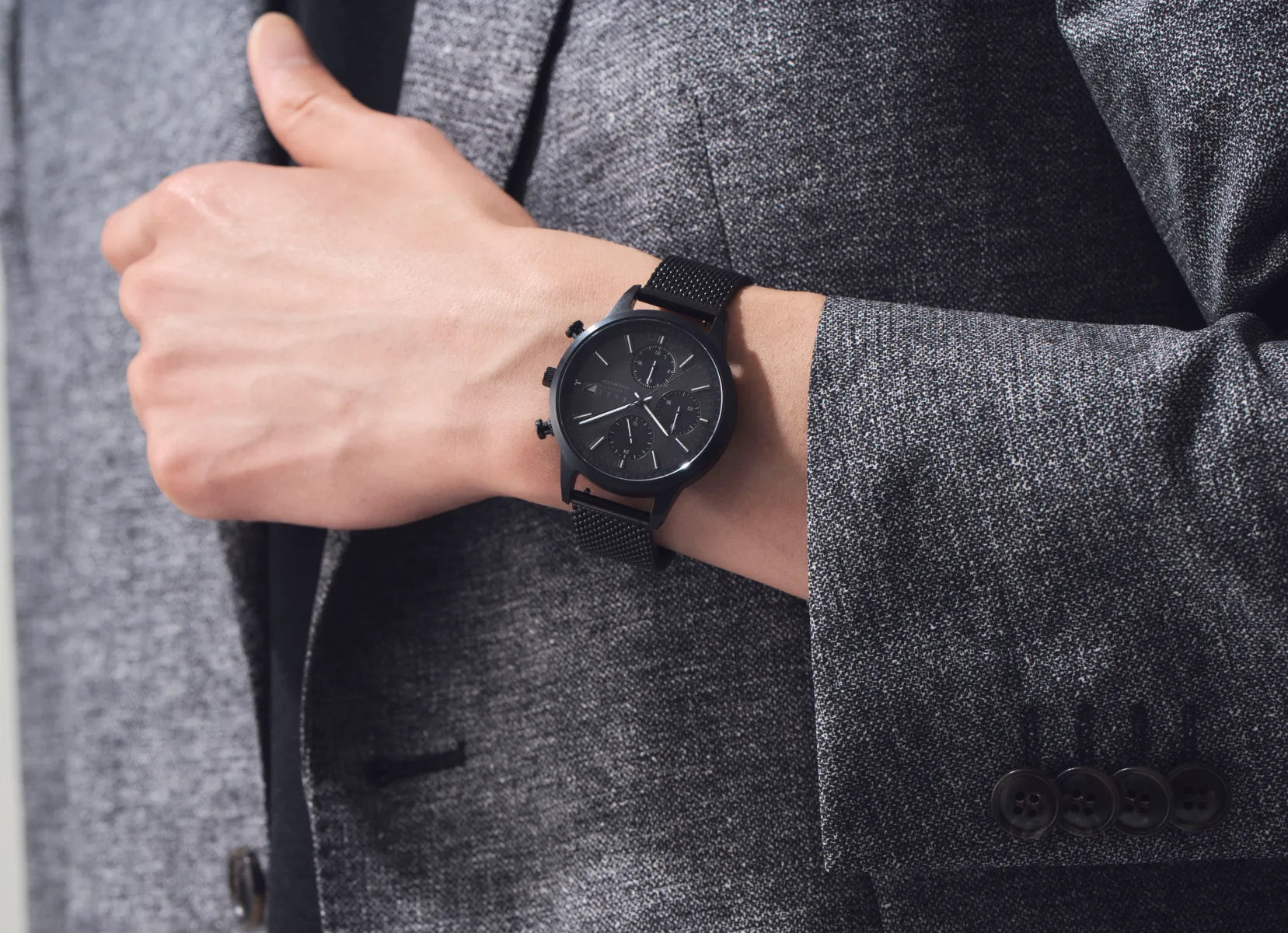 リューズには細やかなローレット(刻み)加工を施し、質感と機能性を両立。ディテールへのこだわりが男心を刺激します。無骨な雰囲気を醸し出しながらも、洗練された印象を与えるスタイリッシュなアクセントです。