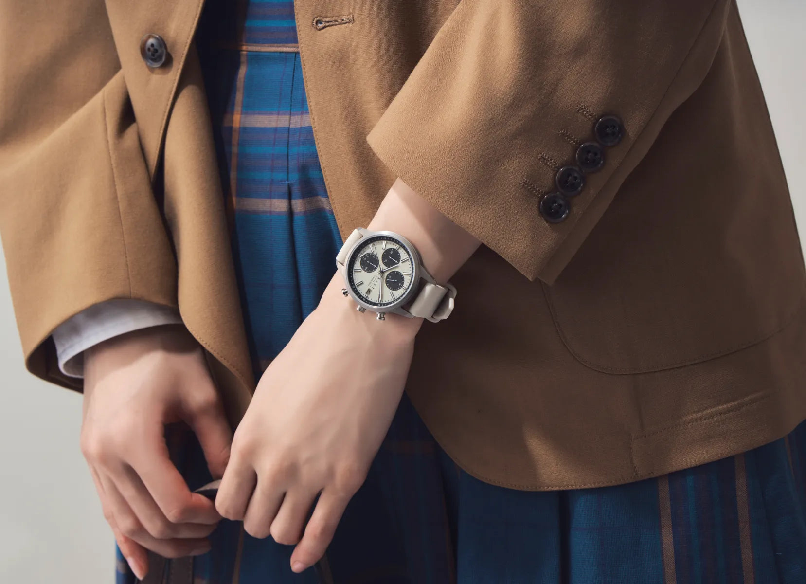フォーマルな場でも、リラックスした休日でも、どんな場所にあってもその存在感は腕元を映えさせ、あなたの装いを引き立てます。落ち着いた色のデザインだからこそ、TPOを問わず毎日身につけられる万能なパートナーとなってくれることでしょう。
