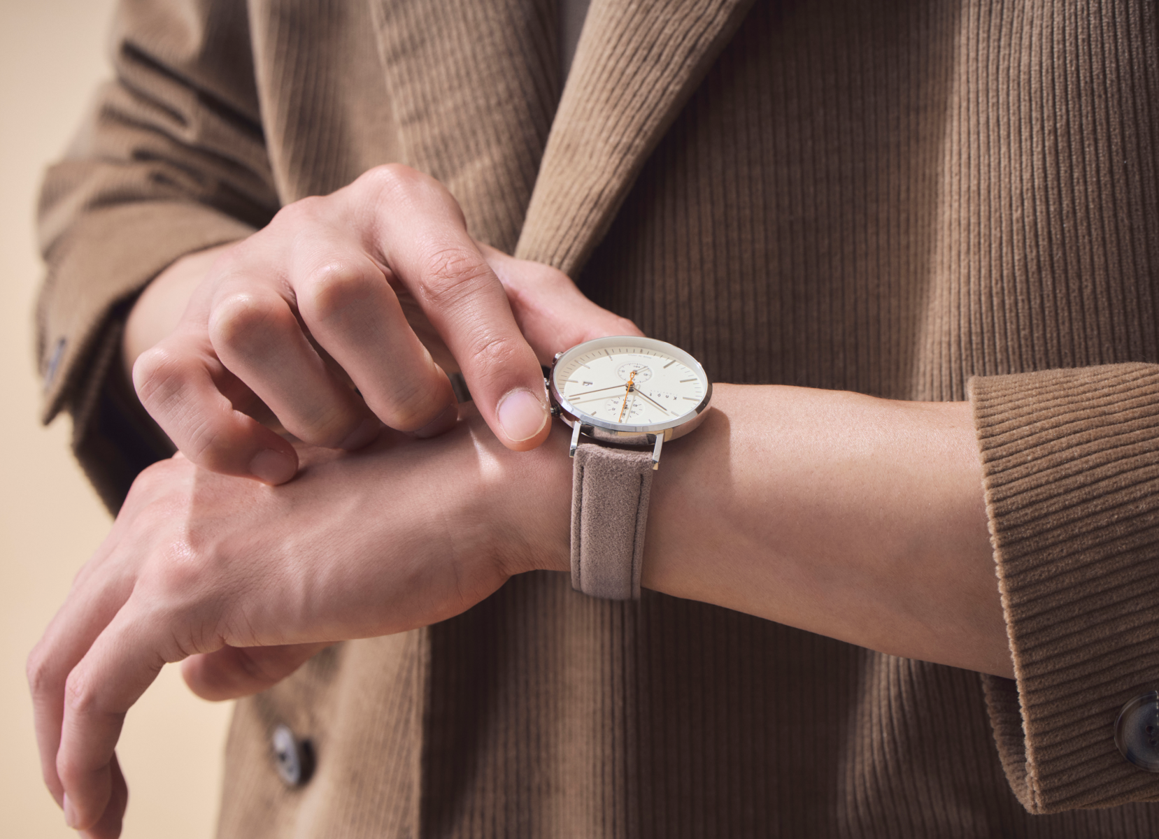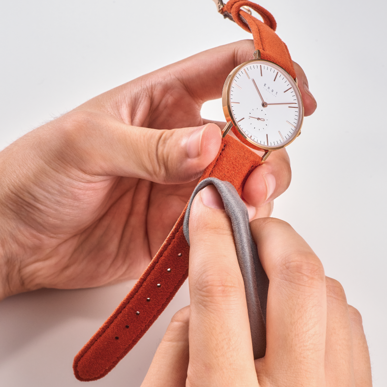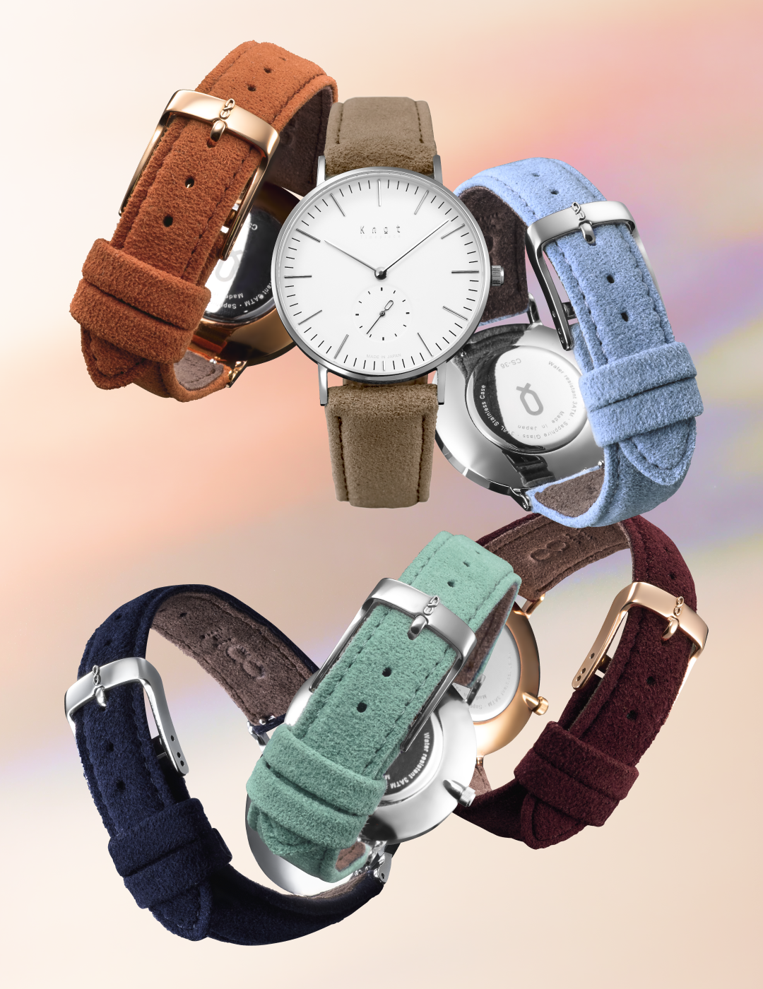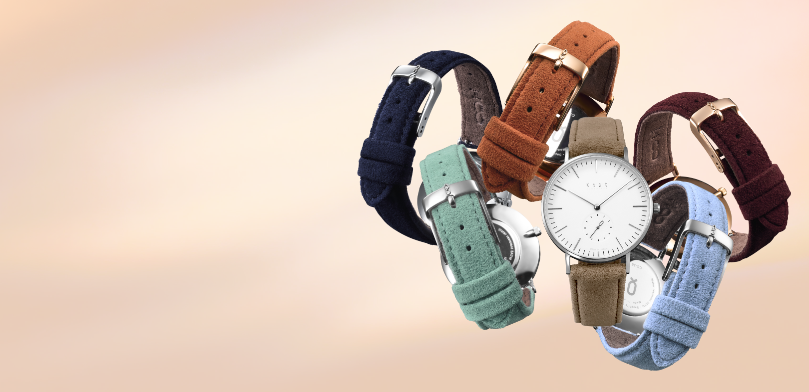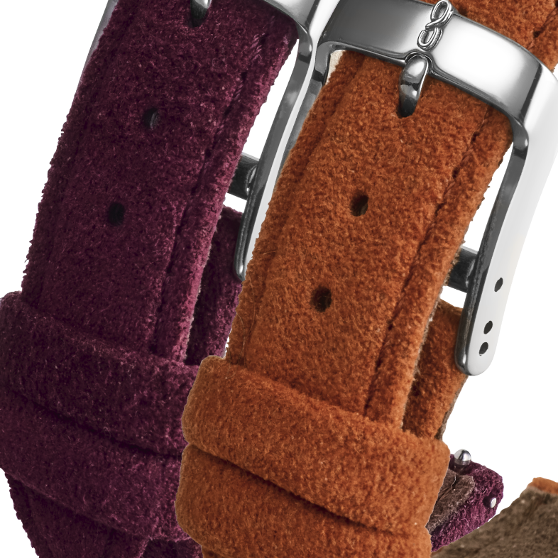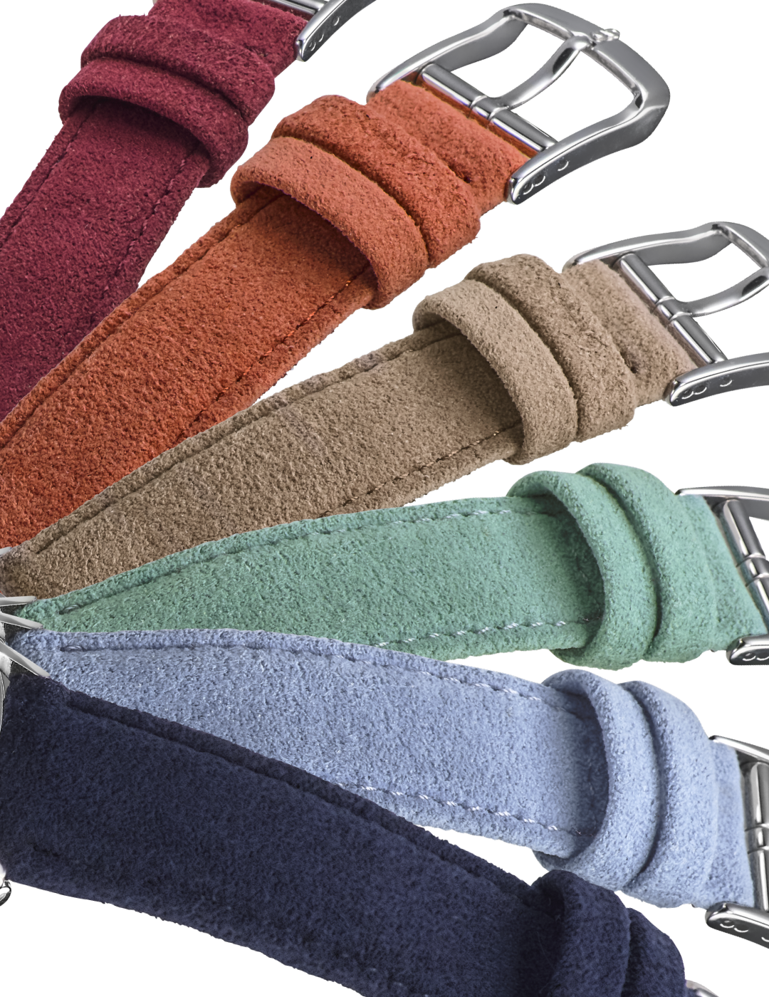 ウルトラスエードのストラップと時計を組み合わせて自分だけの組み合わせを見つけてみましょう。