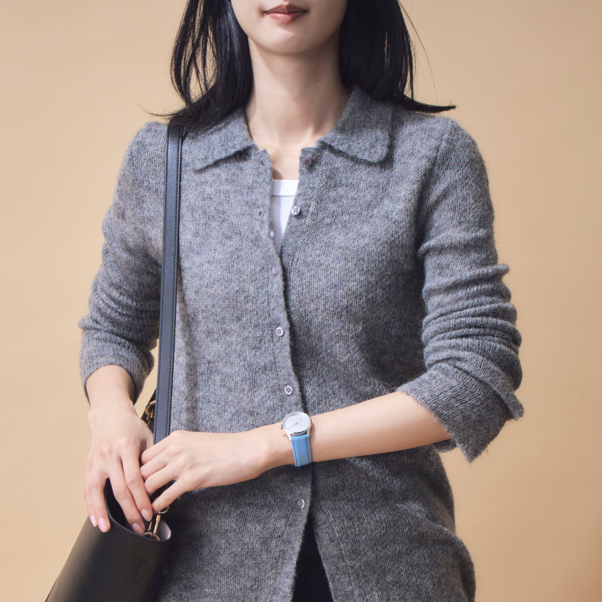 秋冬定番色のブラウンを始め、トレンドのライトブルーやバーガンディーを含む全6色、これからの季節の服装と合わせやすいカラーリングでご用意いたしました。