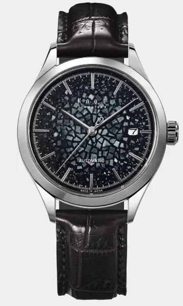希少であったことから位の高い人々だけが使うことのできた朱漆・深い黒を表現する「漆黒」という言葉がある程、漆ならではの深みのある黒漆に「蒔絵」の技法を用い、文字板に華やかな金と銀の粉を蒔きつけました。職人の技で研ぎ出すことにより、華やかさを高めているのが特徴。金粉・銀粉ともに最高グレードの粉を用いています。