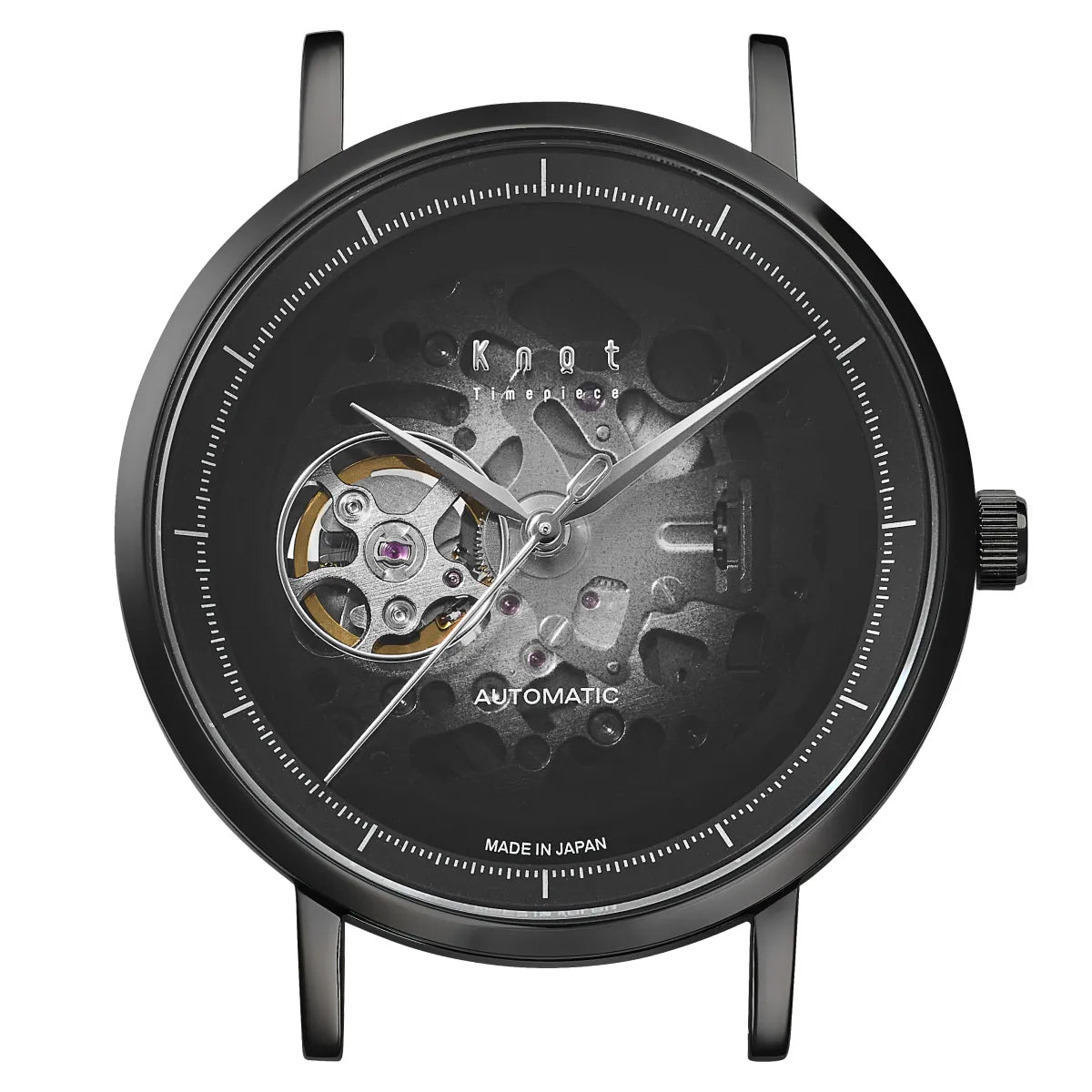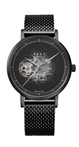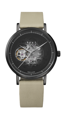 正面から機械式ムーブメントの様子を眺められるスケルトンの特徴を備えながら、グラデーション塗装やシンプルなデザインによってミステリアスな雰囲気をまとい、知的好奇心を呼び覚まします。