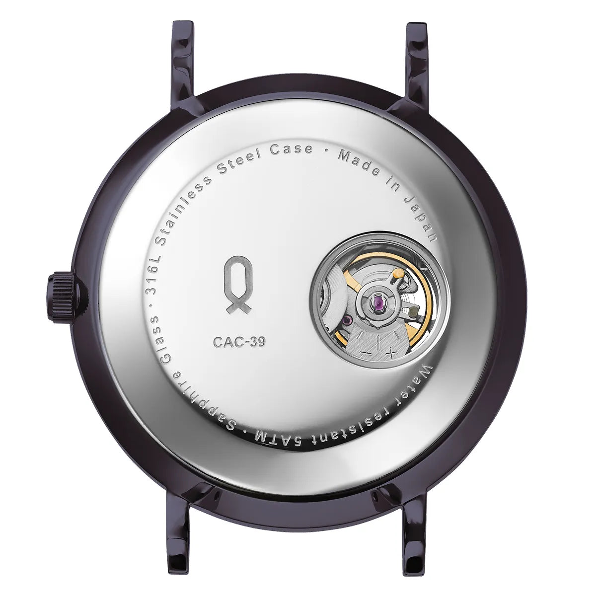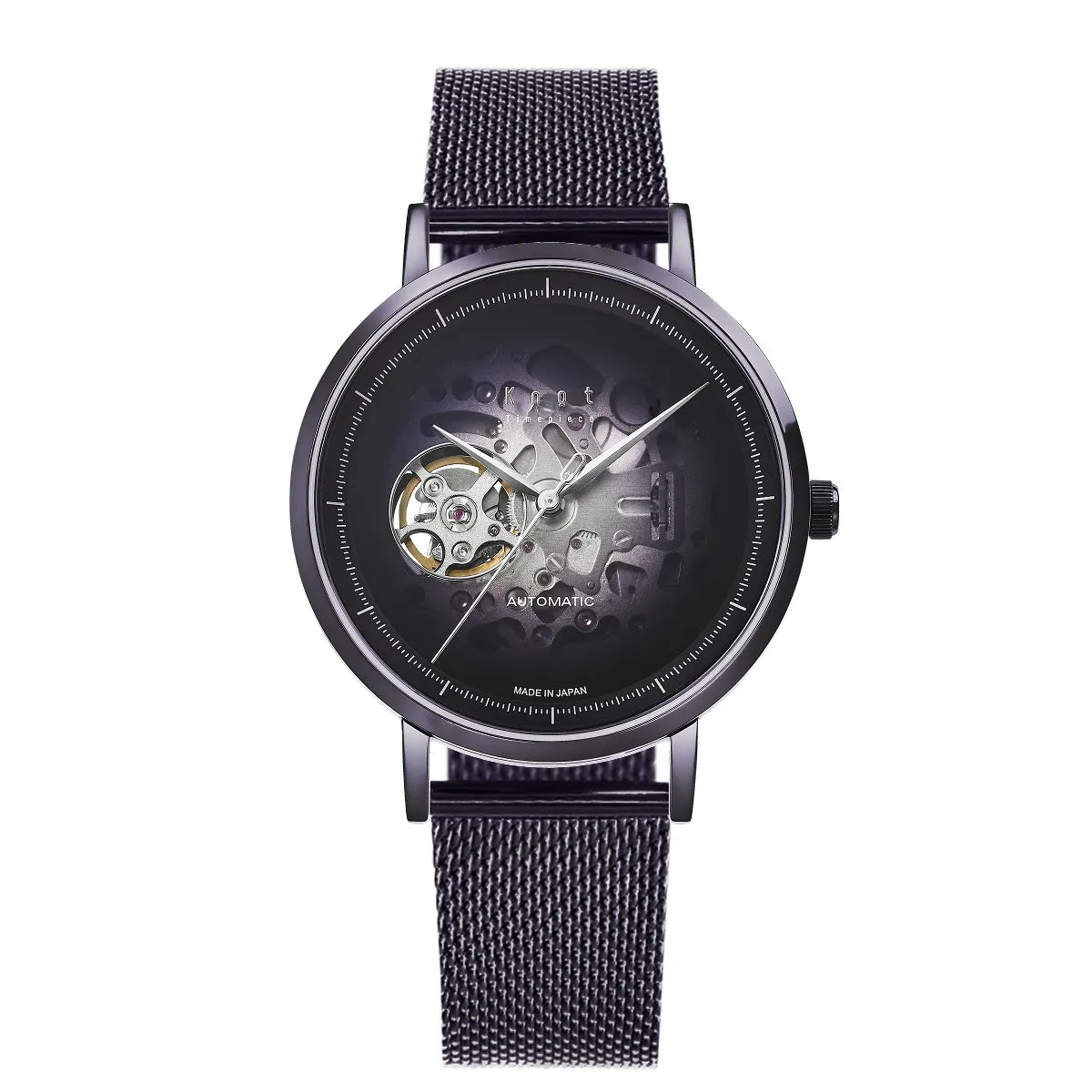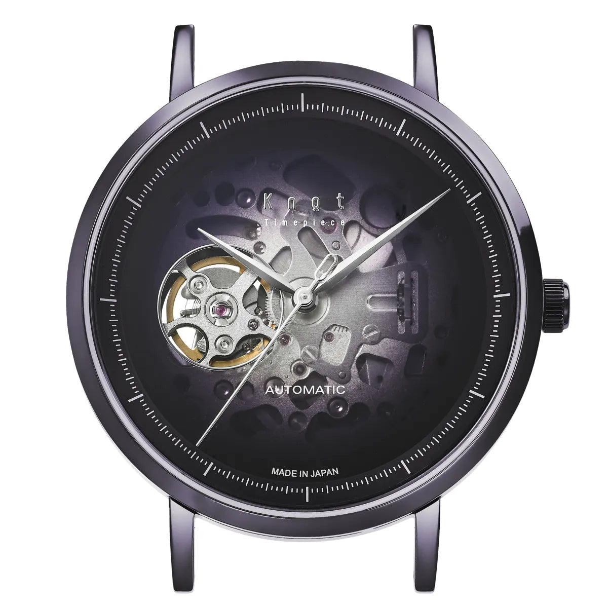 正面から機械式ムーブメントの様子を眺められるスケルトンの特徴を備えながら、グラデーション塗装やシンプルなデザインによってミステリアスな雰囲気をまとい、知的好奇心を呼び覚まします。