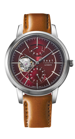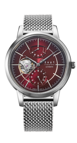 ぜんまいの解ける力で駆動する機械式時計。その機械式ならではの時を刻む心臓部であるテンプの動きを見ることができるのがオープンハートの魅力。立体感のあるデザインと40mmの文字板は腕元に大人のラグジュアリーさを演出します。