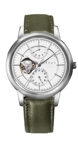 ぜんまいの解ける力で駆動する機械式時計。その機械式ならではの時を刻む心臓部であるテンプの動きを見ることができるのがオープンハートの魅力。立体感のあるデザインと40mmの文字板は腕元に大人のラグジュアリーさを演出します。