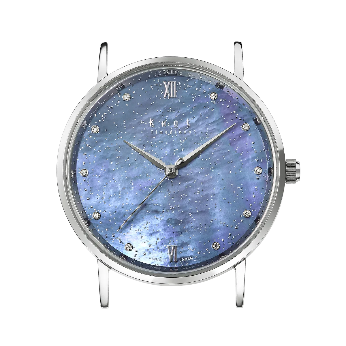 紫陽花の色彩を表現するため、ダイヤルには光を受けて七色に輝くマザー・オブ・パールを採用。インデックスには、きらめく10個のダイヤモンドをセッティング。さらにダイヤル全体にラメを乗せ、雨粒に濡れる紫陽花を思わせるような情感にあふれる表現を施しました。