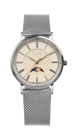 機械式時計の「複雑機構」として古くから人気の高いムーンフェイズ機構。ムーンフェイズ板の回転により満月や三日月などの「月相」を知ることができる機能を、クォーツ時計で表現したモデルです。ペアデザインで38mmと34mmの2つのサイズをご用意しました。
