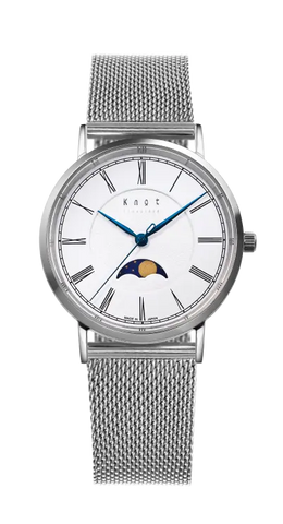 機械式時計の「複雑機構」として古くから人気の高いムーンフェイズ機構。ムーンフェイズ板の回転により満月や三日月などの「月相」を知ることができる機能を、クォーツ時計で表現したモデルです。ペアデザインで38mmと34mmの2つのサイズをご用意しました。