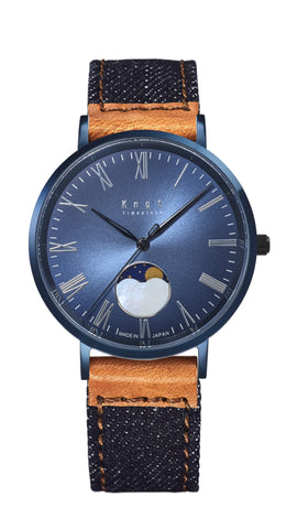1周するのに59日(半周で29.5日)に設定されたムーンフェイズ板が回転することで、満月や三日月、上弦の月や下弦の月など変化していく月の満ち欠けを腕元で見ることができます。