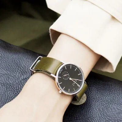 ミリタリーな印象になりがちなNATOストラップを、ビジネスシーンや日常のコーディネートにも取り入れやすく、そして女性も着用しやすいシャープなシルエットに仕上げました。