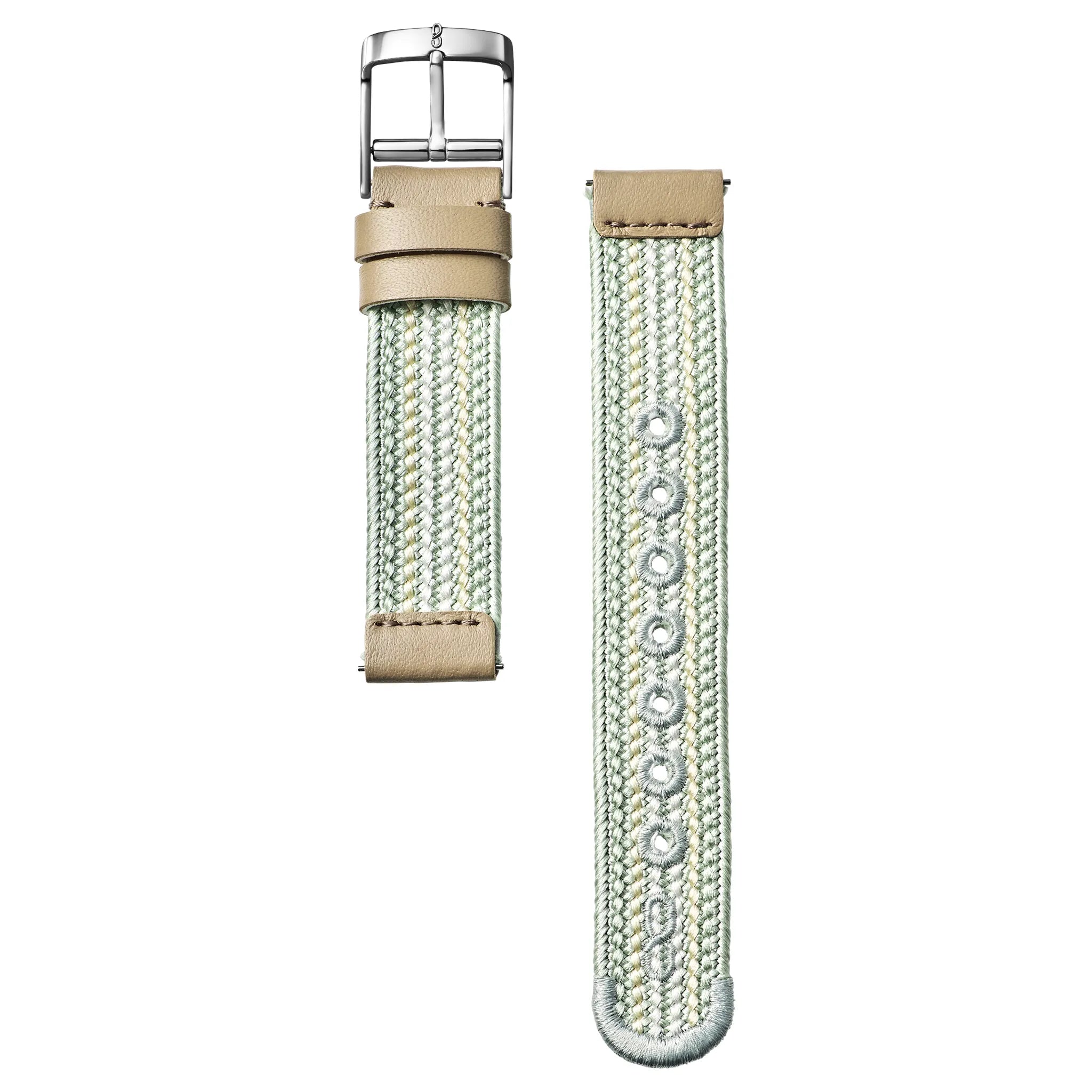 京都の「昇苑くみひも」独自の技術により、「綾」と呼ばれるストライプの縦模様をデザインに取り入れた「綾高麗」が、Knotのストラップになりました。時計のストラップは、ほかの工芸品に比べて必要とされる幅が広く、最初の構想から完成に至るまで、実に1年。独自に研究を重ね、特殊な組み上げの形態を取ることによって完成しました。