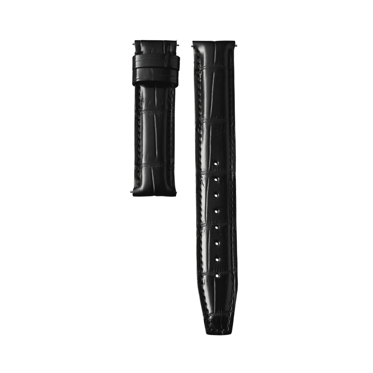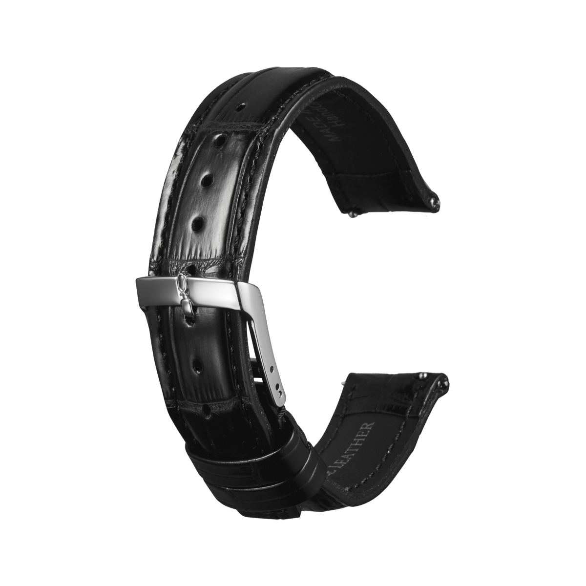 ワニ革の中でも最もポピュラーな「ナイルクロコダイル」。横腹の「玉斑」、腹部の「竹斑」が細かく美しいクロコダイルレザーです。腕に直接触れる裏材には高級車のシート材で使用される素材を採用。機械式時計の重厚なケースをラグジュアリーに魅せる、厚みと立体感のあるデザインが特徴です。
