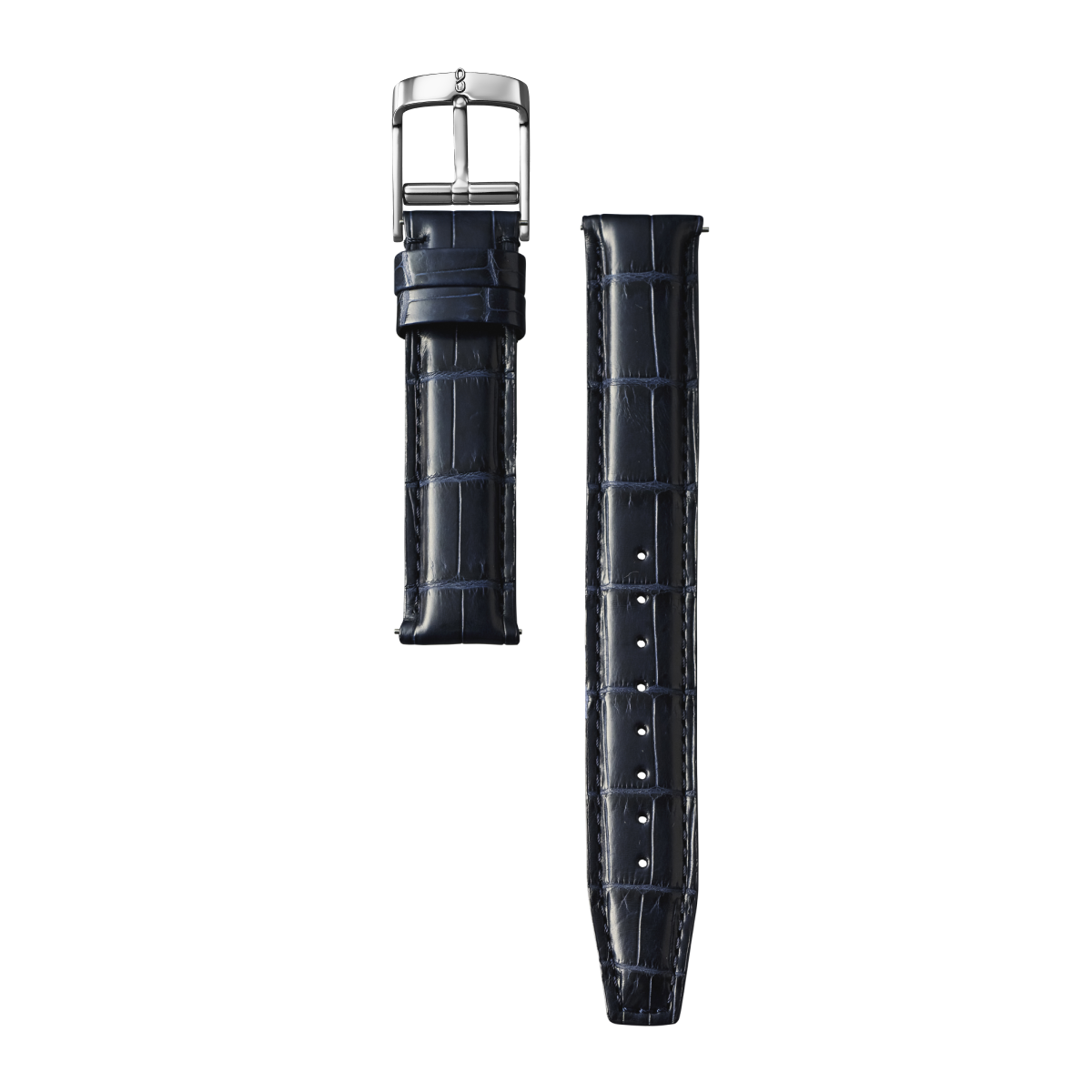 ワニ革の中でも最もポピュラーな「ナイルクロコダイル」。横腹の「玉斑」、腹部の「竹斑」が細かく美しいクロコダイルレザーです。腕に直接触れる裏材には高級車のシート材で使用される素材を採用。機械式時計の重厚なケースをラグジュアリーに魅せる、厚みと立体感のあるデザインが特徴です。