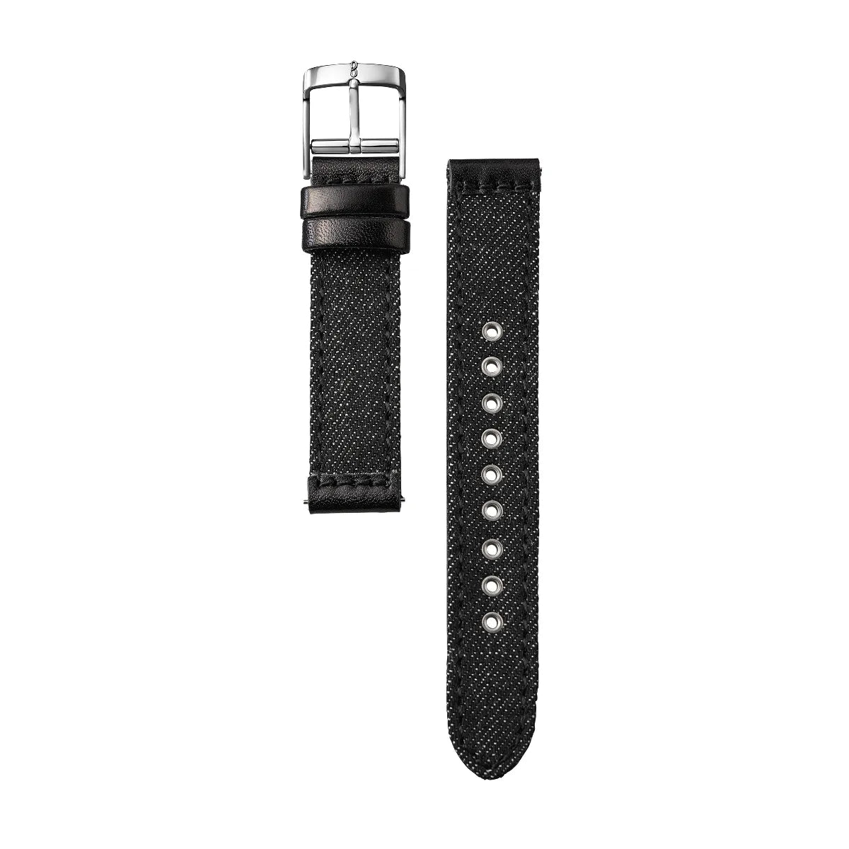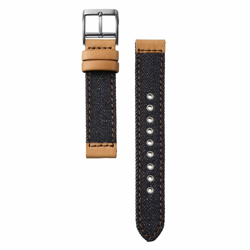 世界で愛されるデニム生地ブランド、カイハラとのコラボレーションにより実現したストラップ。ジーンズのディテールを取り入れたデニム愛あふれるデザインが特徴です。裏材とループには、世界屈指のタンナーである栃木レザーを採用。ジーンズのヒップラベルにも使用されているヌメ革「ジーンズ」は程良いオイル感が深みを生み出し、デニム同様に経年変化を楽しんでいただけます。