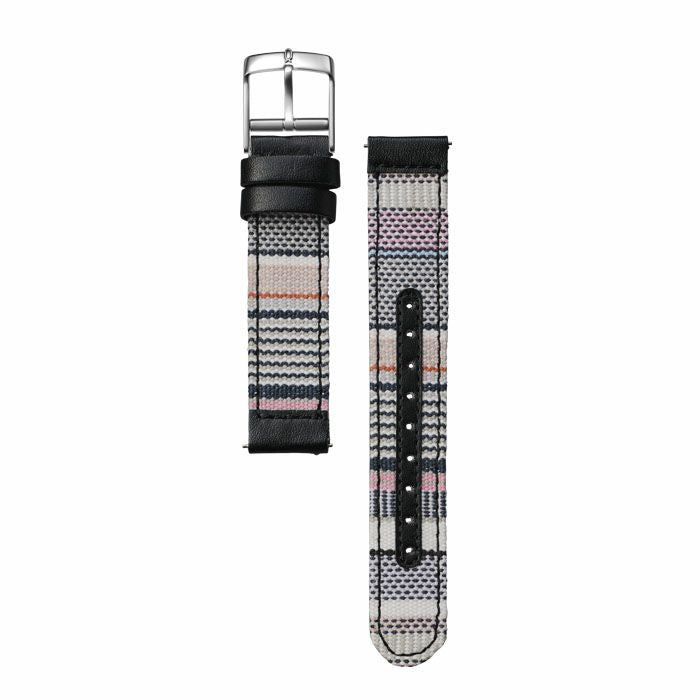 キャンバス生地と呼ばれバッグなどで馴染みのある帆布を採用したストラップ。一番の特徴である厚みは、厚いほど縫製が難しく1年にもわたる試作、検証を重ねようやく実現しました。耐久性と柔軟性から選び抜いた8号生地に、防水レザーを合わせ、アクティブに使えるストラップに仕上げました。