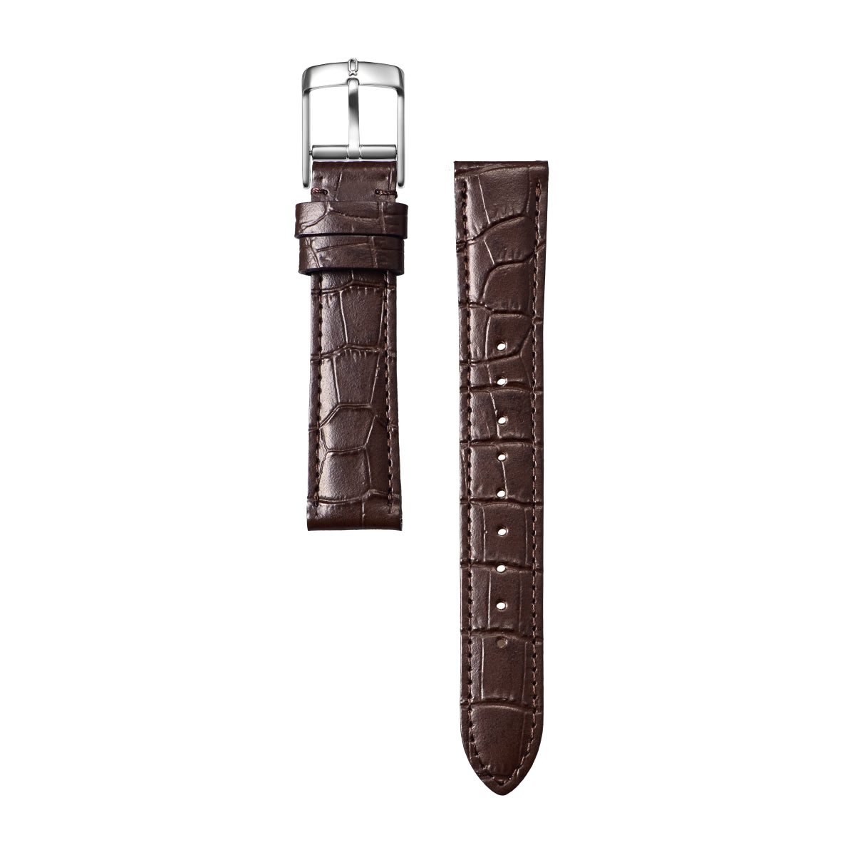 国内でなめした高品質なレザーに細かい凹凸を繊細に表現する日本の型押し技術を用い、風合い豊かなクロコダイルスタンパードレザーに仕上げました。腕周りの細い女性の腕元に合うテーパードのトラディショナルシェイプと男性の腕元に合うストレート&ロングシェイプとを3色づつご用意致しました。マットな質感にすることで過美な印象を抑え、上品な仕上がりでプレミアムシリーズに迫るラグジュアリーなストラップは腕元に華やかさをもたらします。