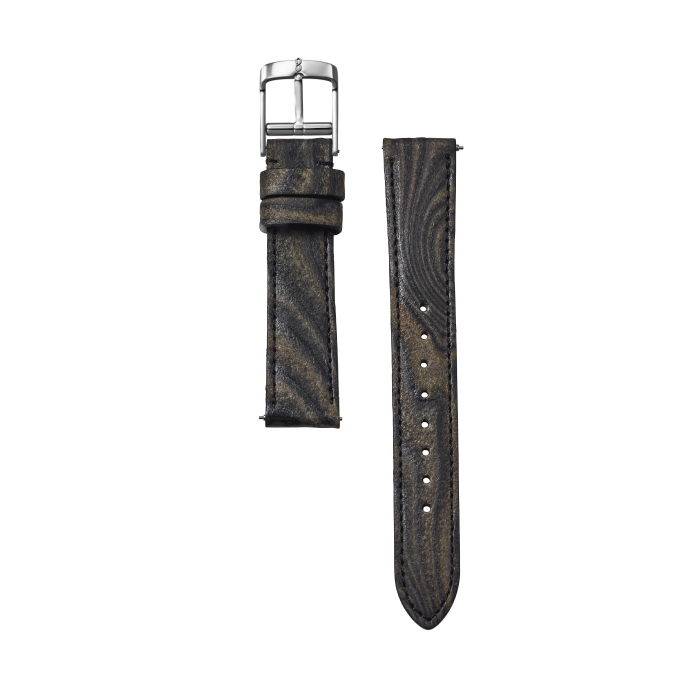 創業120余年を誇る東京・台東区の皮革工芸店「大久保商店」を営む皮革工芸職人、大久保邦雄氏が生み出す、唯一無二のレザー。「スキモレザー」とは、幾重にも貼り合わせたタンニンなめしの革を漉(す)くことで生み出される模様から、その名がつけられました。すべて大久保氏の創造力によって生み出される独創的な模様は、まさにアート作品です。一つとして同じものがない、唯一無二のスキモレザーストラップの美しさは一度見たら、忘れられません。