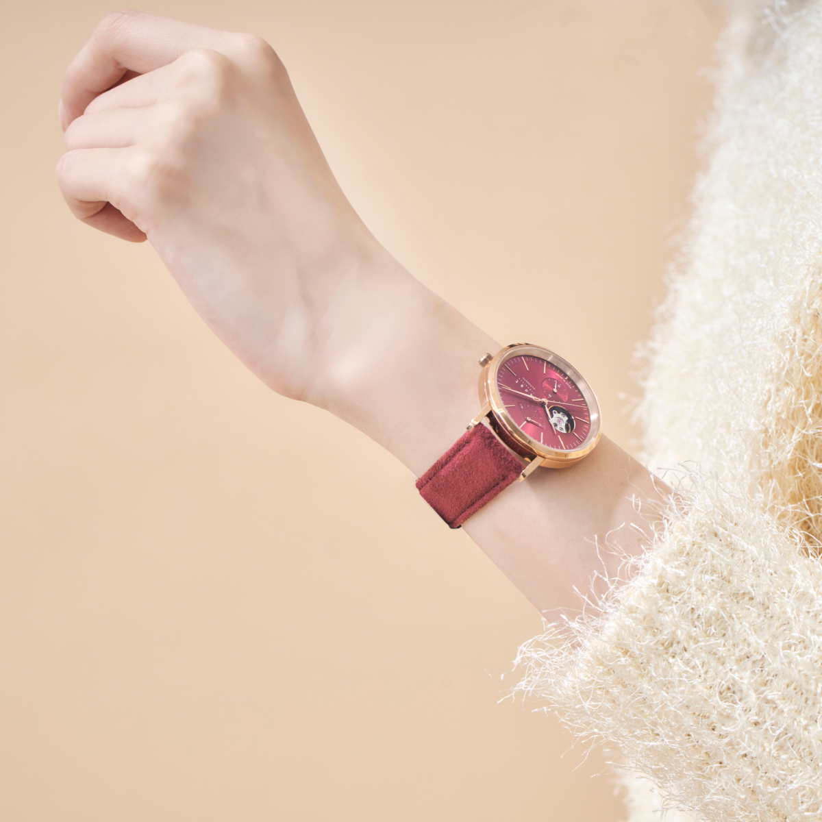 腕元から季節をまとうように、あたたかみを感じる質感と華やかなカラーバリエーションで冬のコーディネートの主役になるストラップ。ウルトラスエードは、天然スエードの風合いはそのままに、着け心地や耐久性にも優れた、機能性素材です。