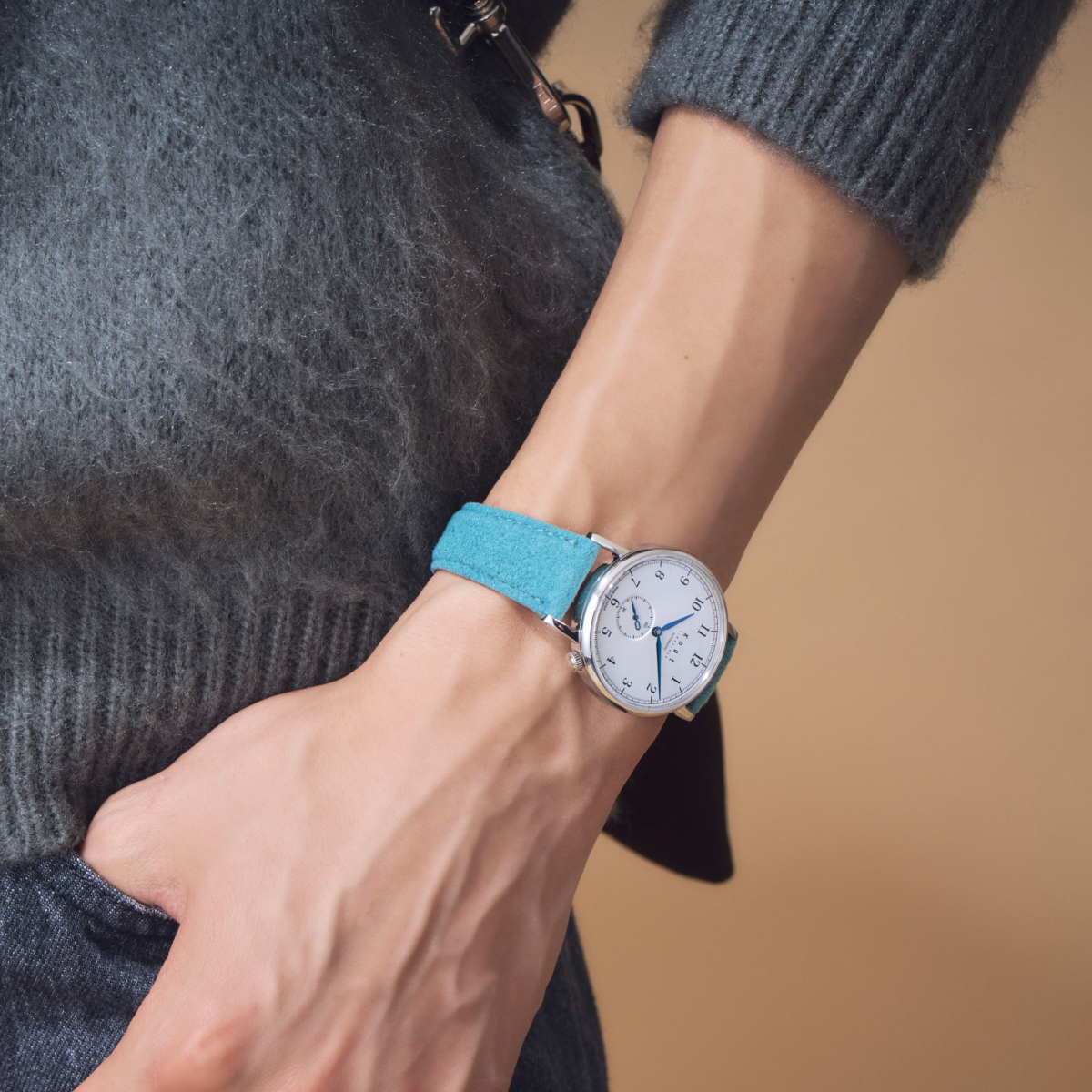 腕元から季節をまとうように、あたたかみを感じる質感と華やかなカラーバリエーションで冬のコーディネートの主役になるストラップ。ウルトラスエードは、天然スエードの風合いはそのままに、着け心地や耐久性にも優れた、機能性素材です。