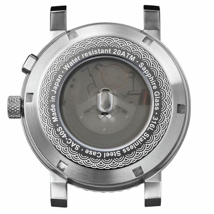 未来の美しい環境のために、Knotが提案する新シリーズ「SUSTINO®(サスティノ)」シリーズ。裏蓋には吉祥文様の1つ「青海波」をモチーフとしたデザインが入っています。青海波は無限に広がる穏やかな波に「未来永劫平穏に、平和な暮らしへの願い」が込められた柄であり、サステナブルな世界への願いを込めたデザインです。