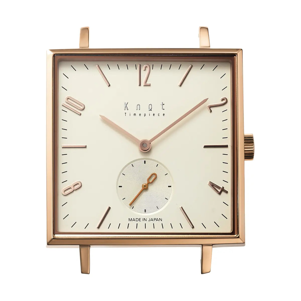 デザイン性と視認性を兼ね備えたアラビック数字とバーのコンビネーションインデックス。幅32mmのケースは腕元での見え方を計算しこだわり抜いたサイズ。シンプルな正方形のフェイスは、アクセントとしてファッションを引き立てる存在感が魅力です。存在感はありつつススリムに設計されているので着用感も良く、Knotでも定番人気のスクエアモデルです。